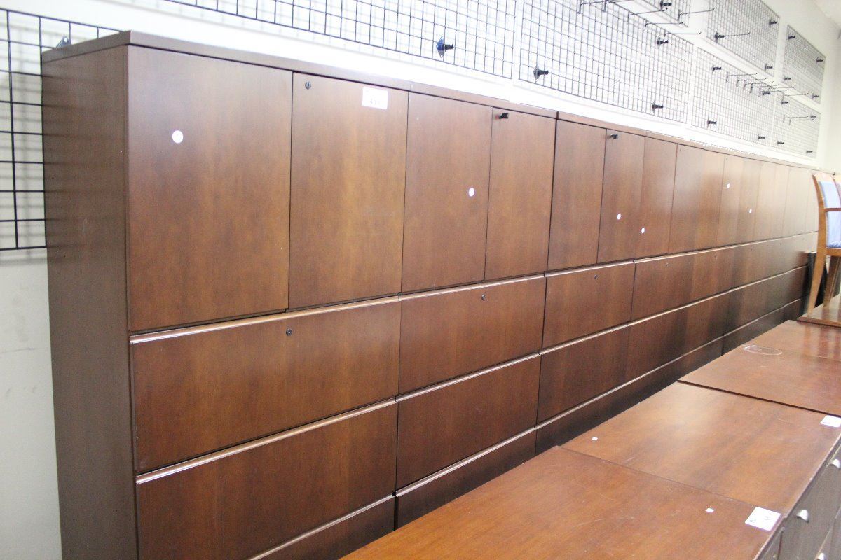 HAWORTH CHERRY 3 DRAWER LATERAL FILE CABINET WITH OVERSHELF