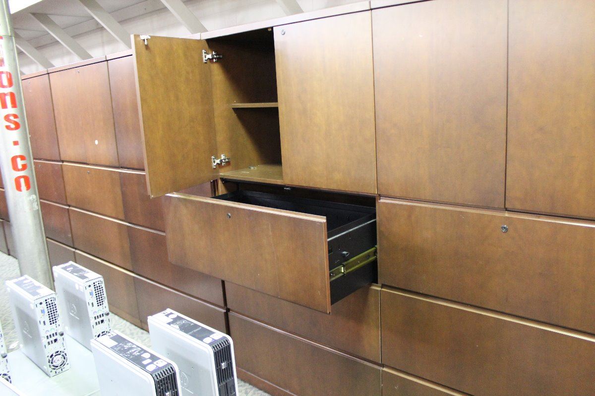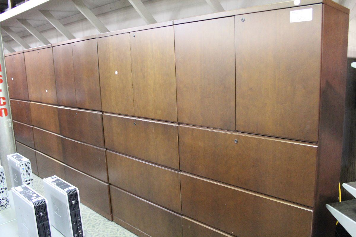HAWORTH CHERRY 3 DRAWER LATERAL FILE CABINET WITH OVERSHELF