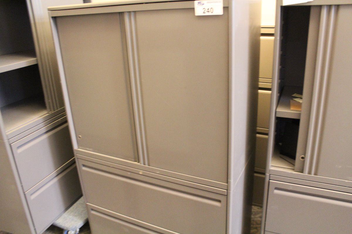 HAWORTH PREMISE CHARCOAL GREY 2 DRAWER LATERAL FILE CABINET WITH OVERSHELF
