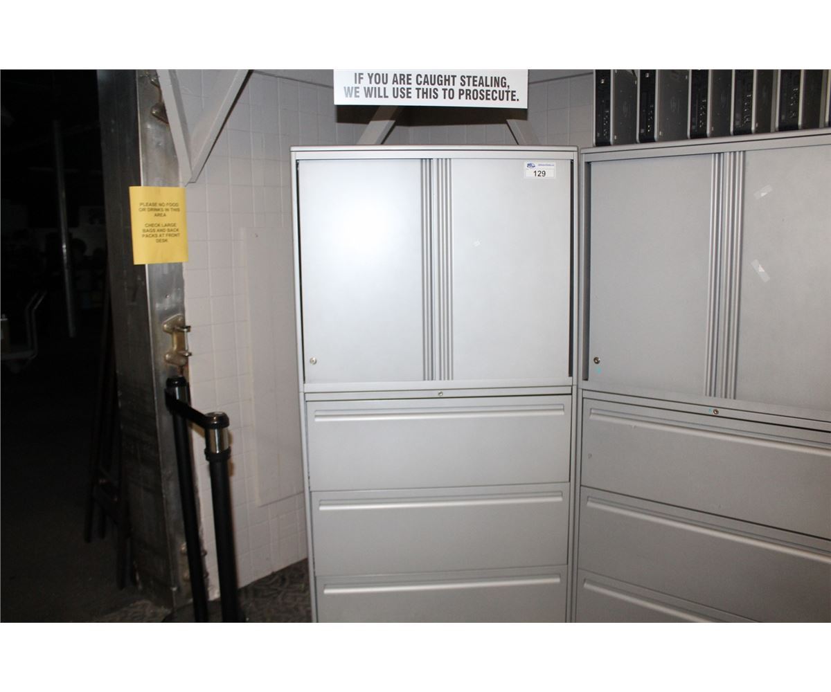 HAWORTH PREMISE GREY 3 DRAWER LATERAL FILE CABINET C/W DOUBLE OVERSHELF