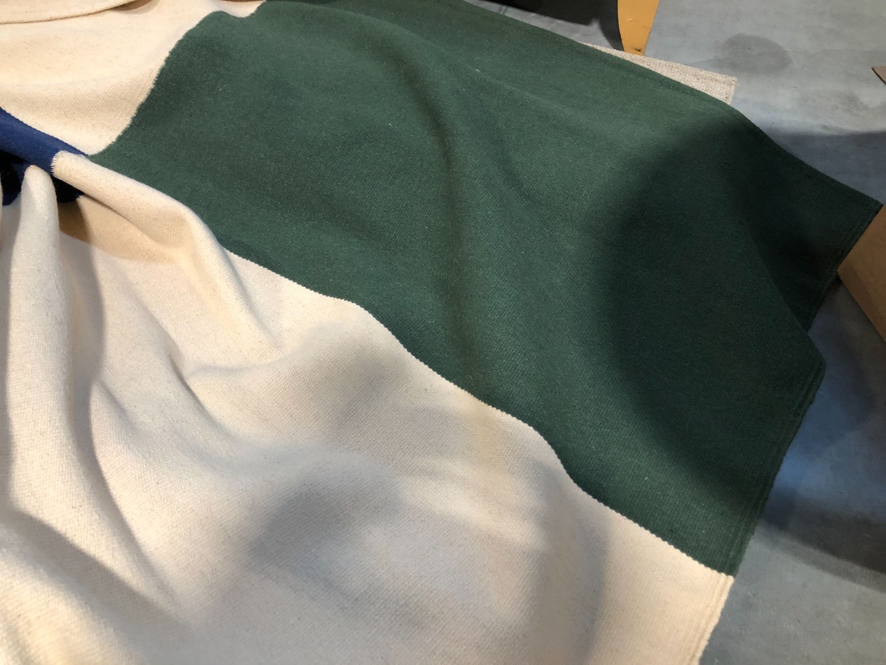 HAY ETHAN COOK FLAT WORKS 8' X 10' PEACH GREEN CHECK RUG, RETAIL VALUE $1,695