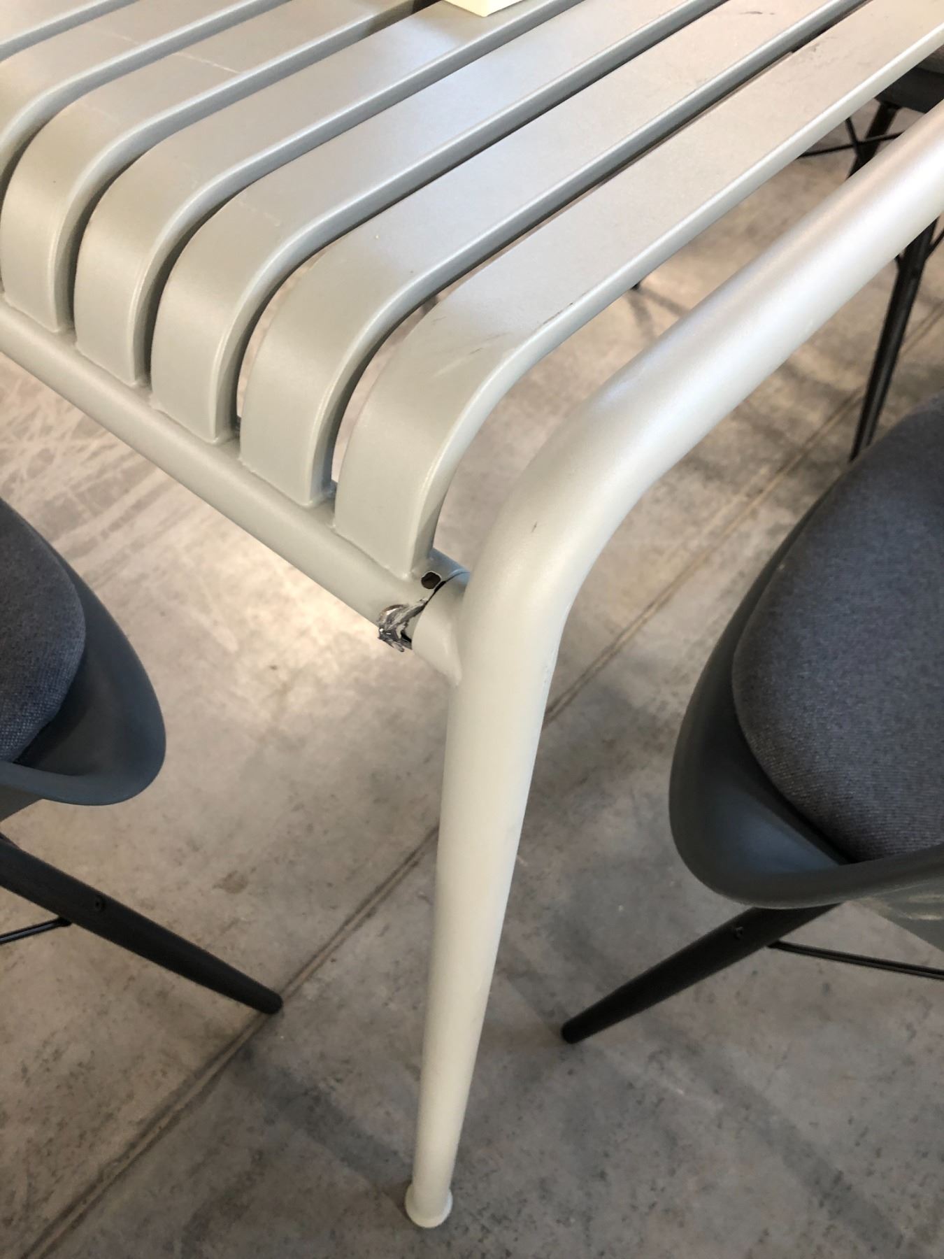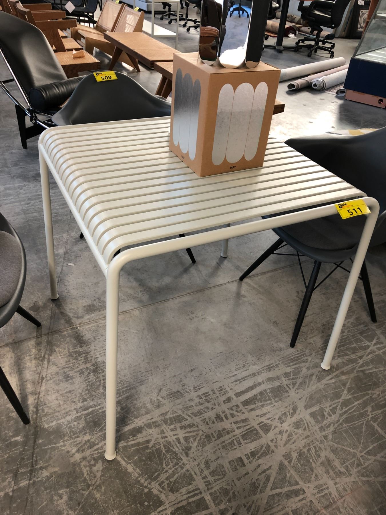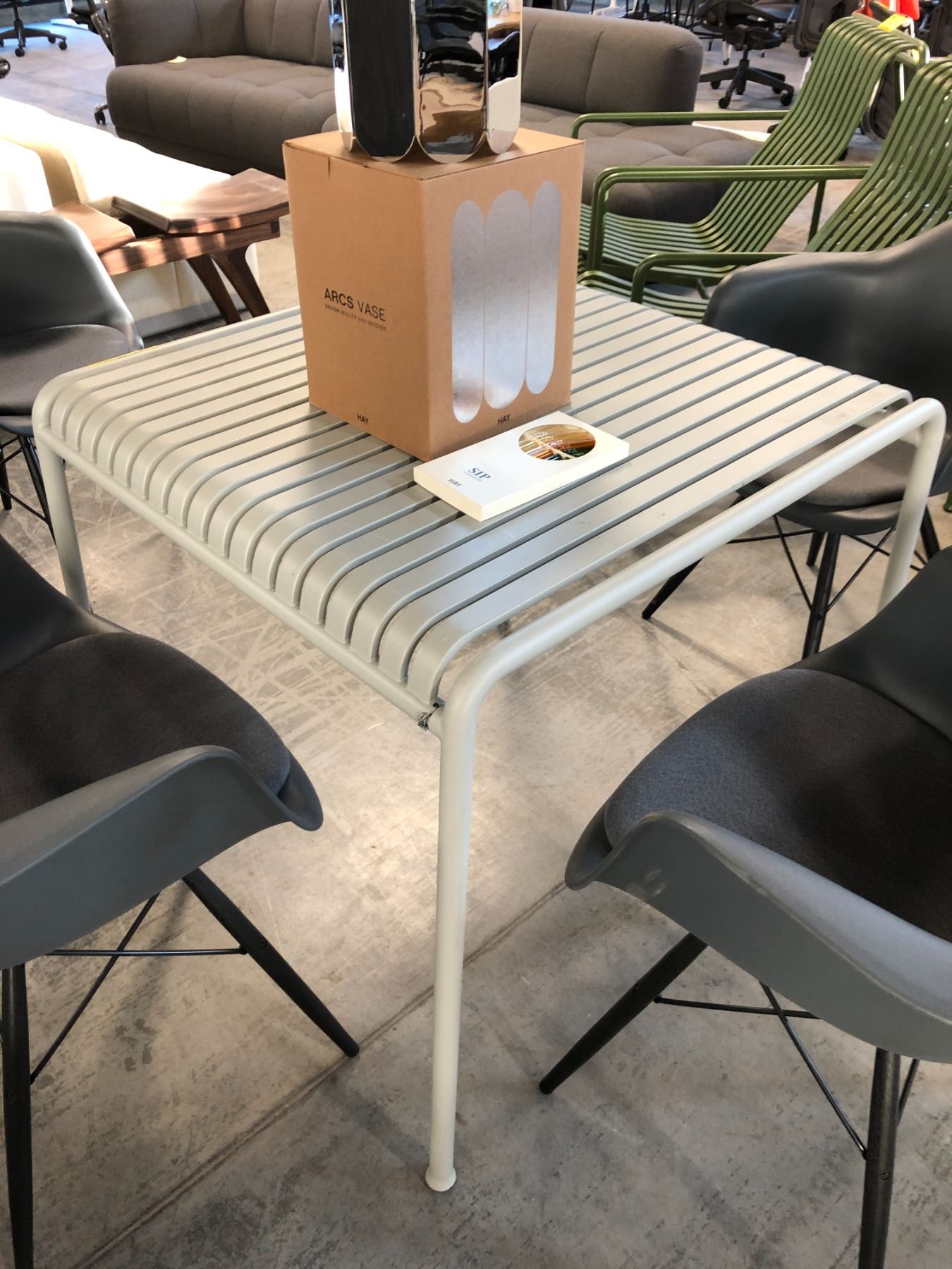 HAY PALISSADE SKY GREY 32" X 32" CAFE TABLE, RETAIL PRICE $1,111 (SMALL COSMETIC DAMAGE)