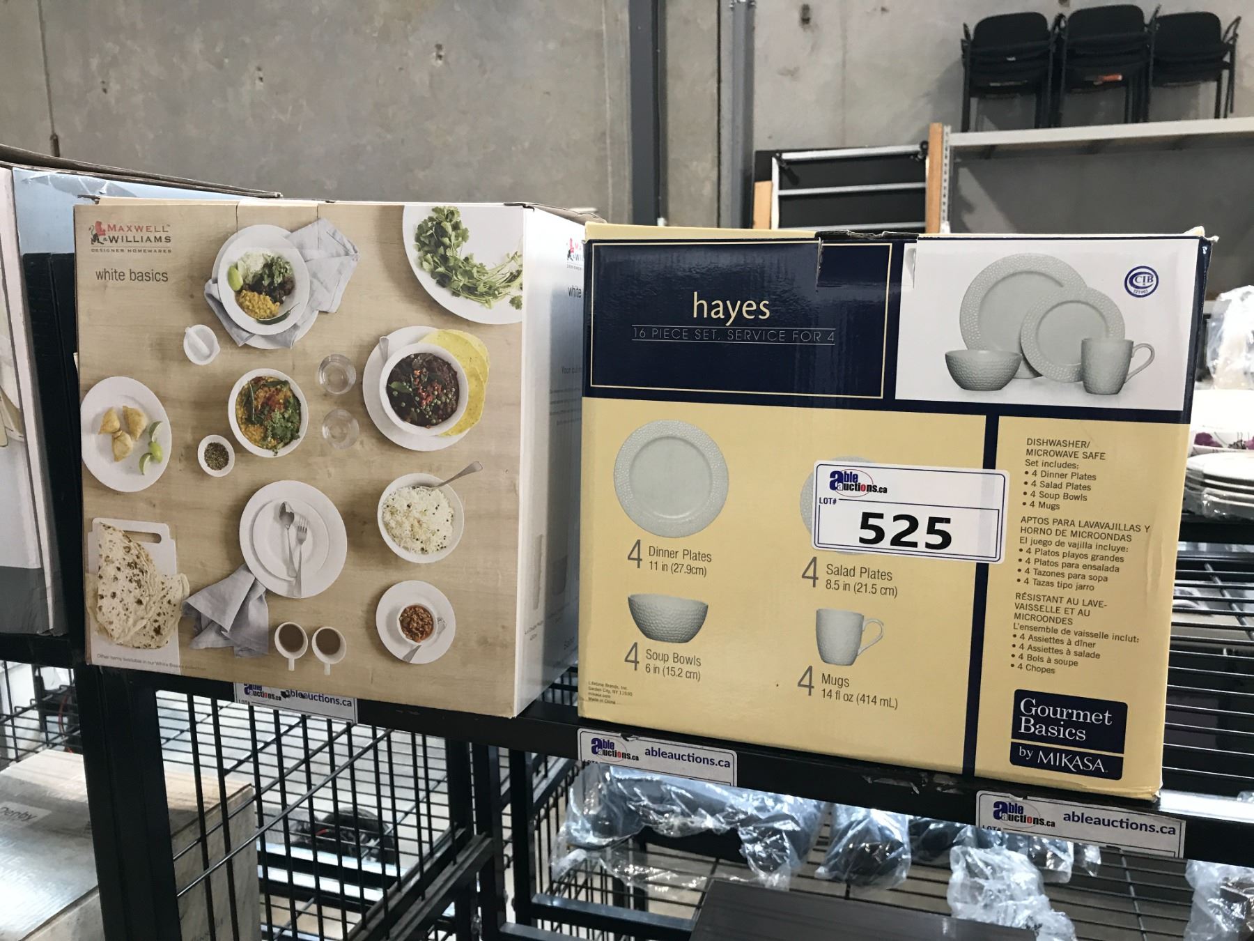 HAYES DINNER SET WITH MISSING SOUP BOWL AND MAWELL WILLIAMS WHITE BASICS DINNER SET WITH MISSING MUG