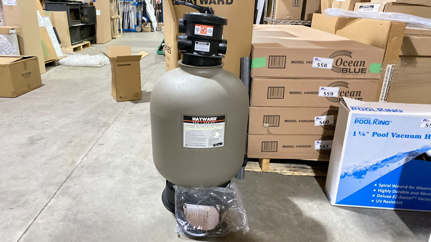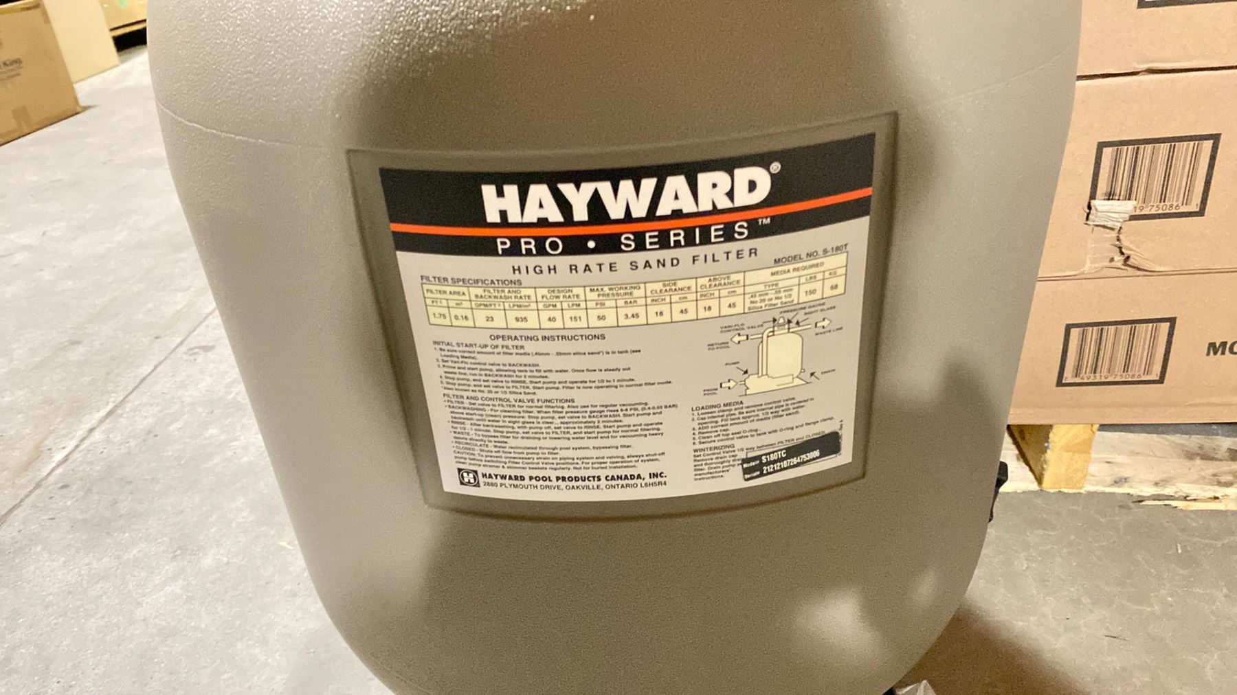 HAYWARD MODEL S180TC. 18" SAND FILTER W HOSE ADAPTERS AND CLAMPS AND TOP MULTI PORT VALVE. NEW IN BOX