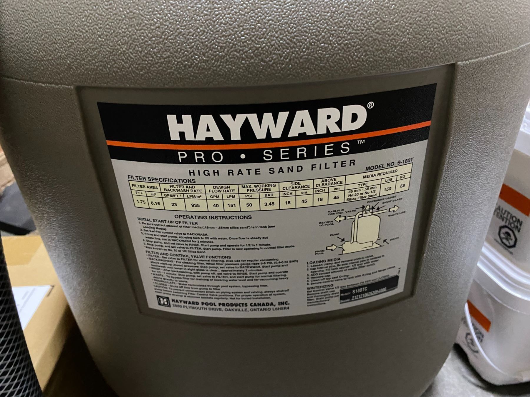 HAYWARD PRO SERIES 18" HIGH RATE SAND FILTER MODEL S180TC WITH HOSE AND CLAMPS