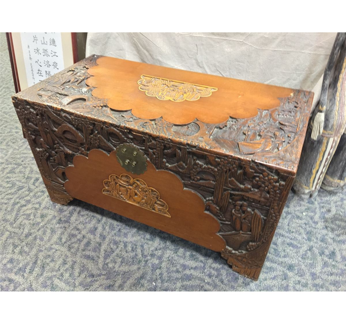 HEAVILY CARVED ASIAN CAMPHOR CHEST