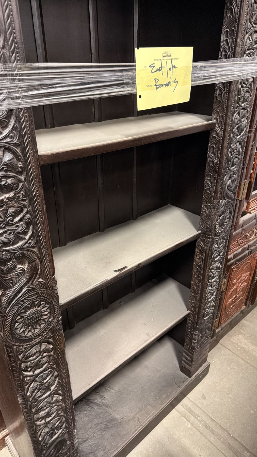 HEAVILY CARVED HARDWOOD ASIAN BOOKSHELF