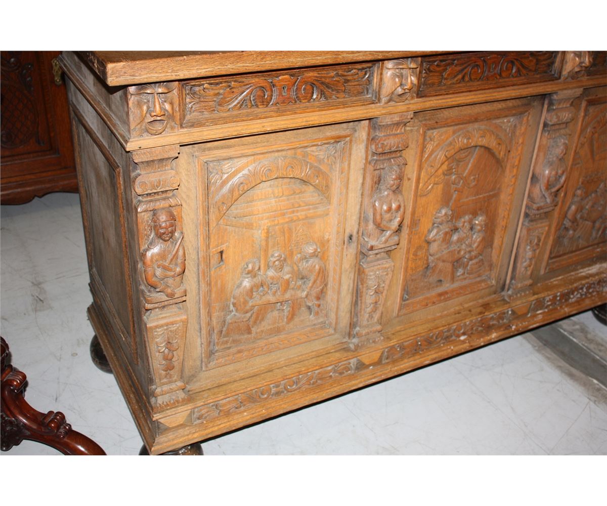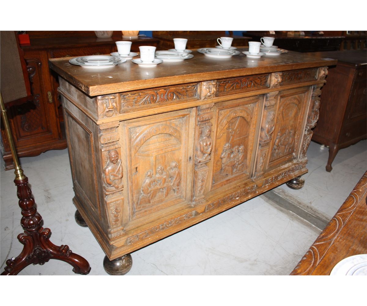 HEAVILY CARVED OAK SIDEBOARD