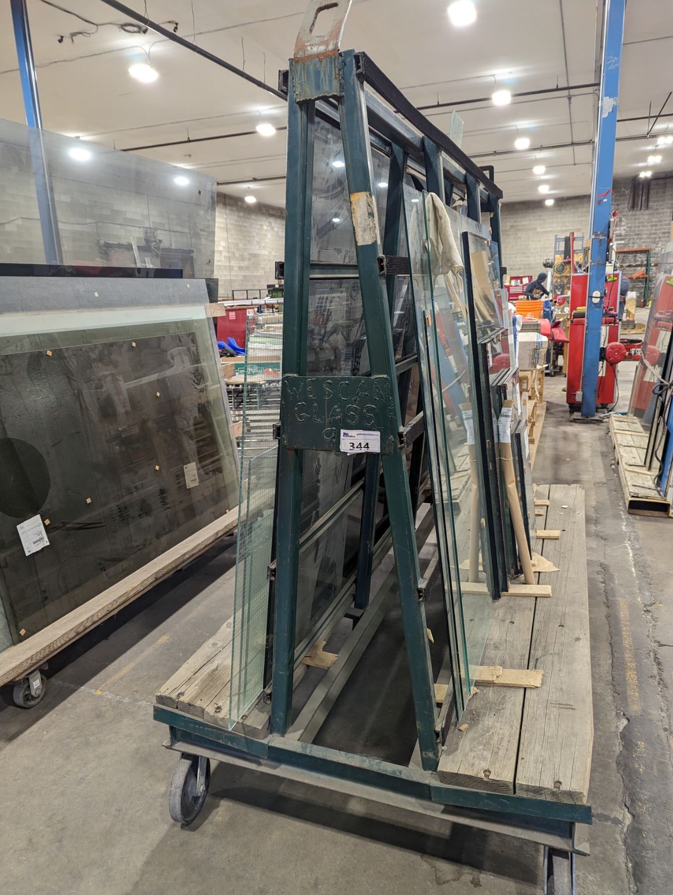 HEAVY DUTY 8'X4'X7'H GLASS RACK/A-FRAME ON 8" WHEELS-PICK UP LAST DAY-GLASS NOT INCLUDED