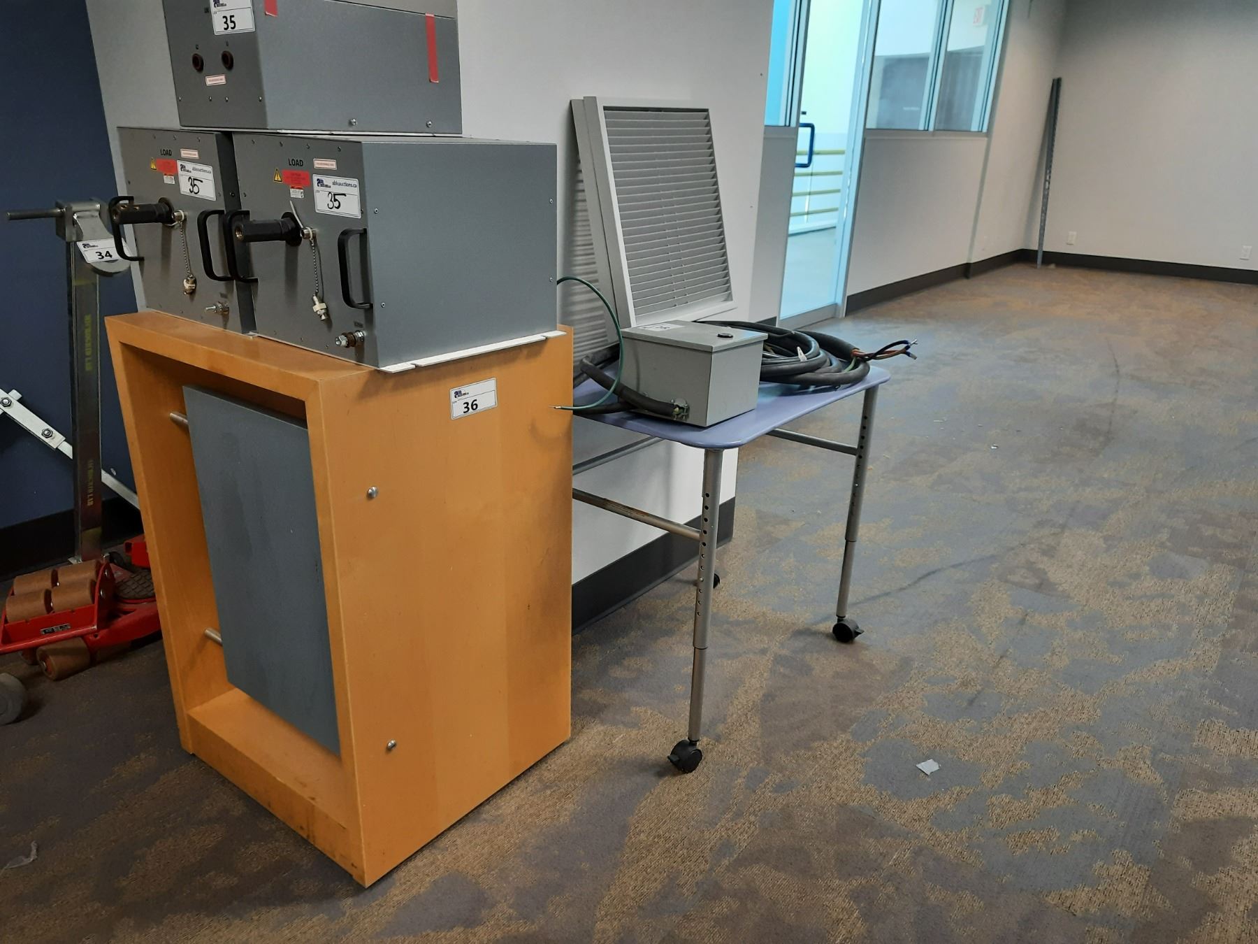 HEAVY DUTY POWER CABLE, TRANSFORMER BOX AND WOOD PEDESTAL DISPLAY