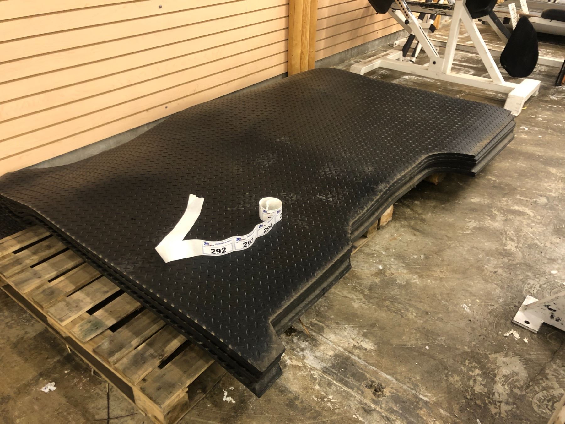 HEAVY DUTY RUBBER MAT, APPROX. 8' X 5', CUT TO SHAPE FOR 8' TRUCK BED