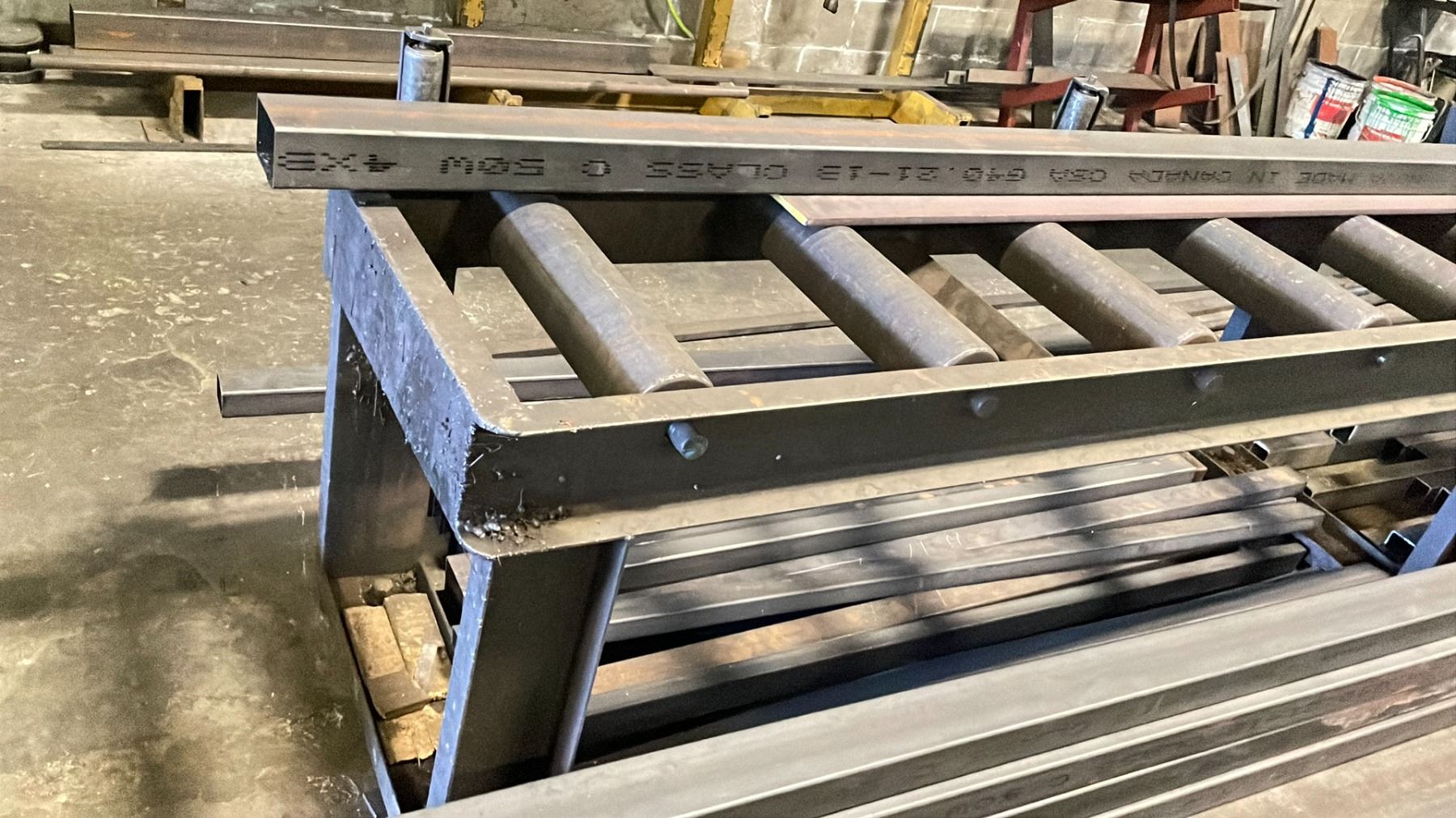 HEAVY DUTY STEEL MATERIAL ROLLER CONVEYOR - APPROX.167" ACROSS X 24" WIDE X 36" HIGH