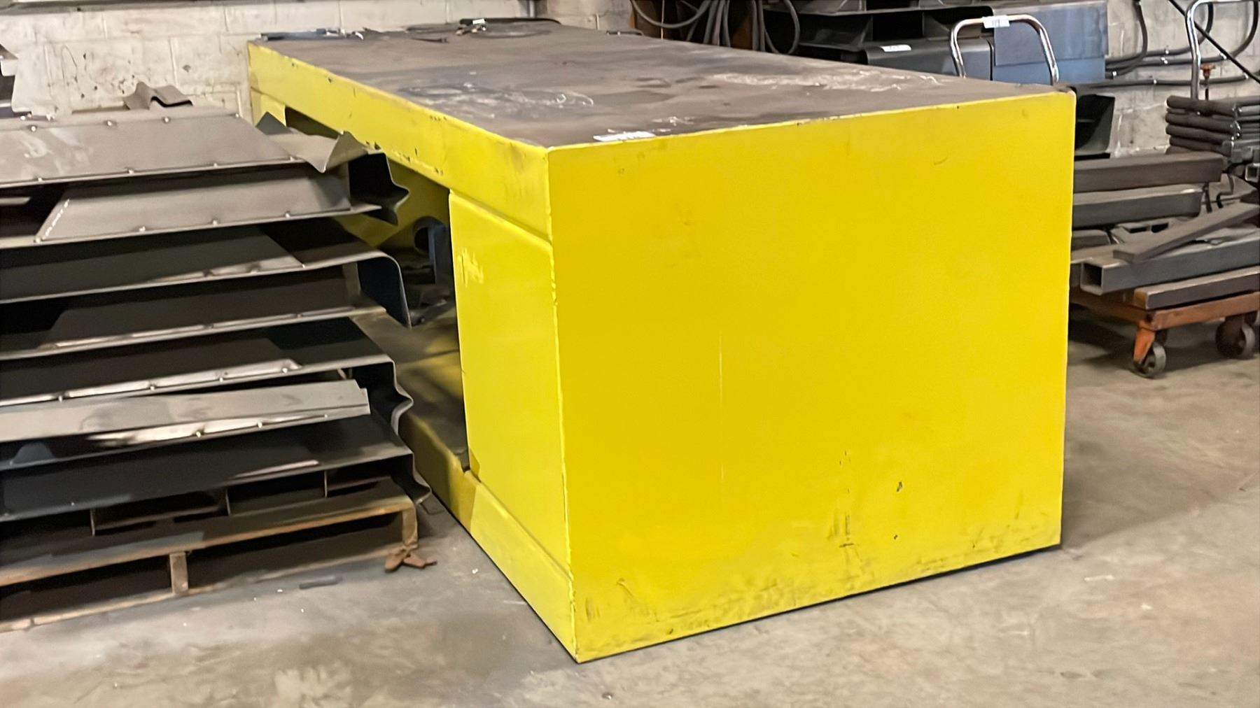 HEAVY DUTY STEEL WORK TABLE - APPROX. 120" ACROSS X 45" WIDE X 39" HIGH