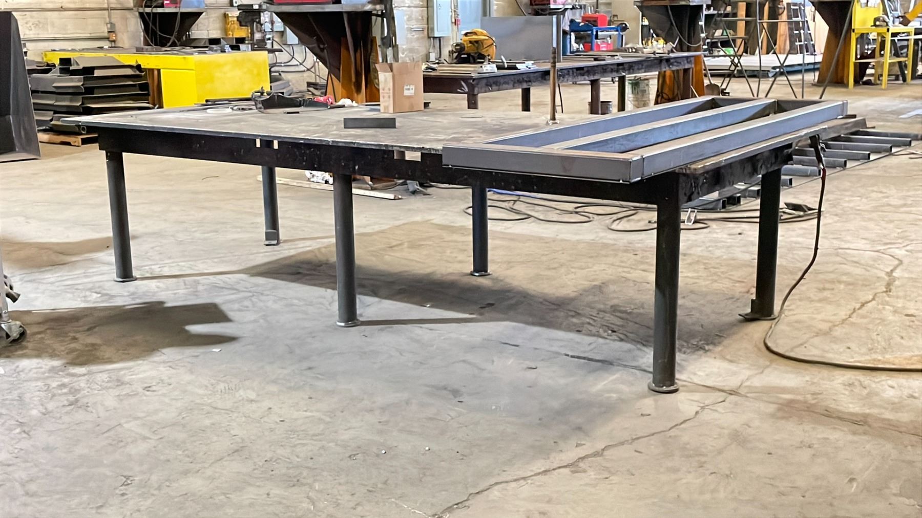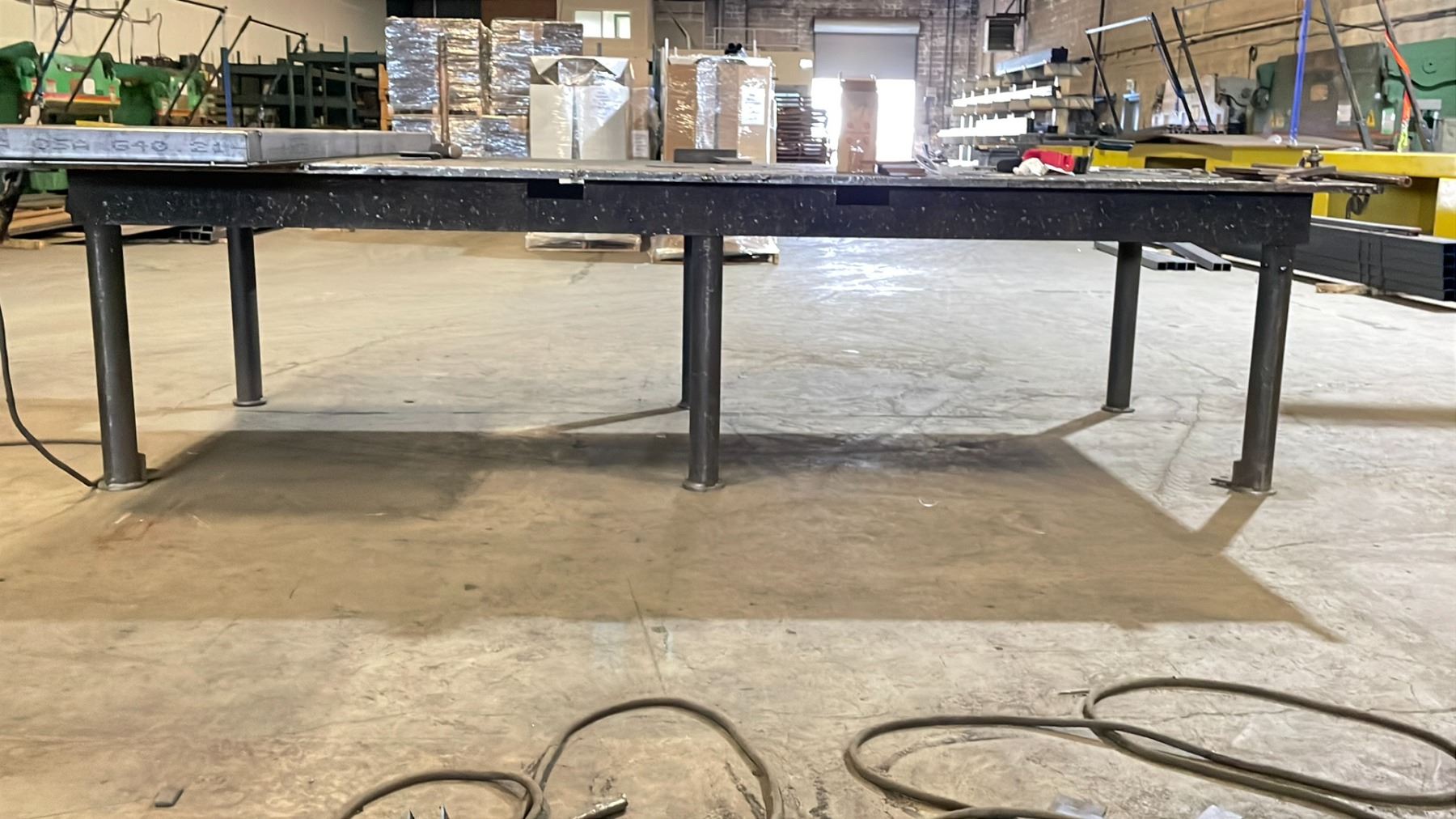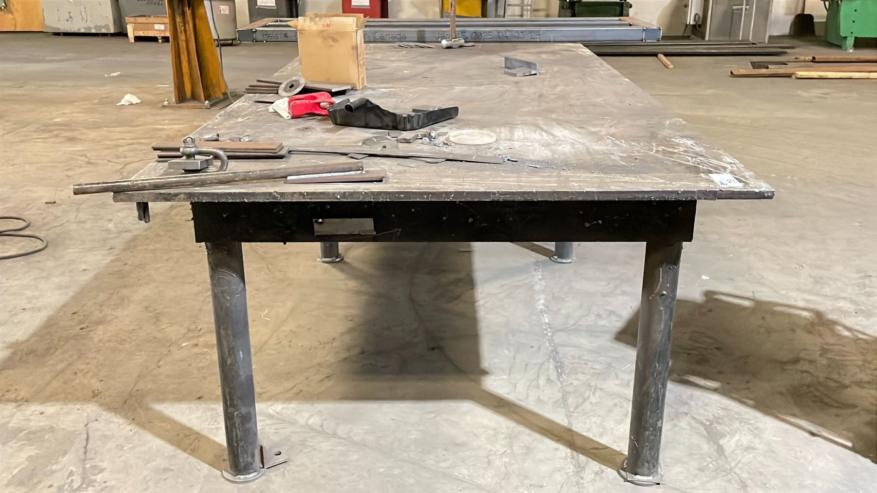 HEAVY DUTY STEEL WORK TABLE WITH 1" THICK TOP X 144" ACROSS X 60" WIDE X 36" HIGH *FRI SEP 5 OR SAT SEP 6 REMOVAL