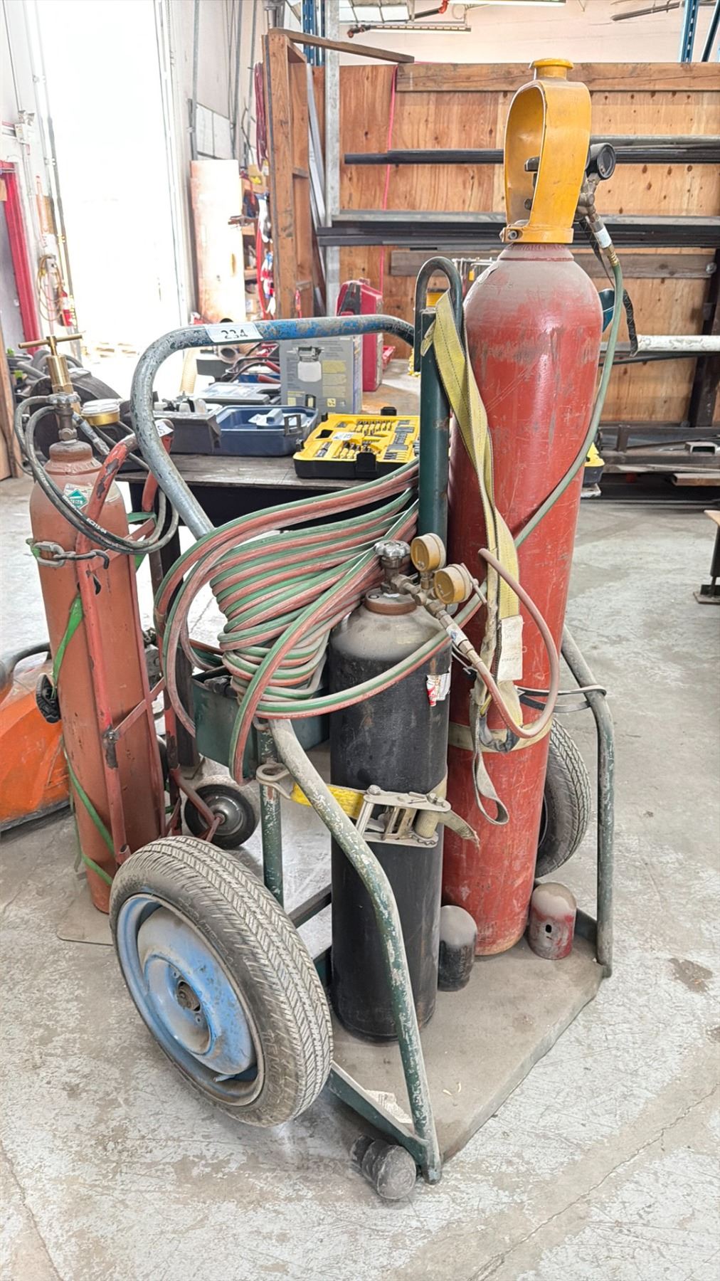 HEAVY DUTY WELDERS DOLLY WITH OXY ACETYLENE HOSE LINE, GAUGES AND TORCH *TANKS NOT INCLUDED*
