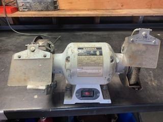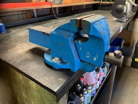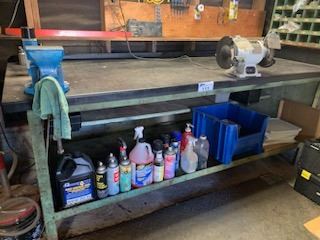 HEAVY DUTY WORKBENCH ( APPROXIMATELY 90"W X 34"D X 3' ) WITH BENCH VICE & GRINDER