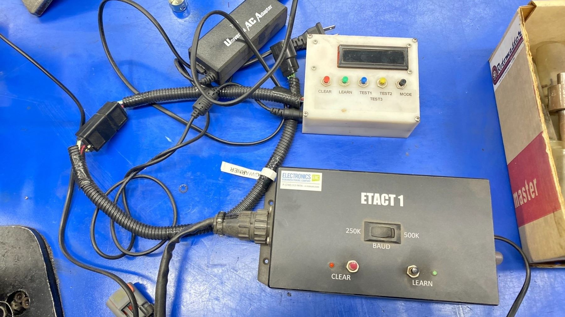 HEINS TURBO CHARGER BALANCER, MODEL IC2. INCLUDES ETACT 1 VARIABLE GEOMETRY CALIBRATOR AND ACTUATOR CALIBRATION GAUGES. CAN BE USED FOR OLDER AND NEWER TURBOS WITH ELECTRONIC ACTUATORS. ASSORTED CONNECTOR CABLES.