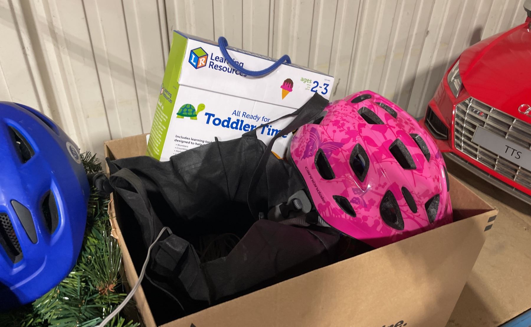 HELMETS, SPEAKERS, TOYS & ASSORTED CHRISTMAS DECORATIONS