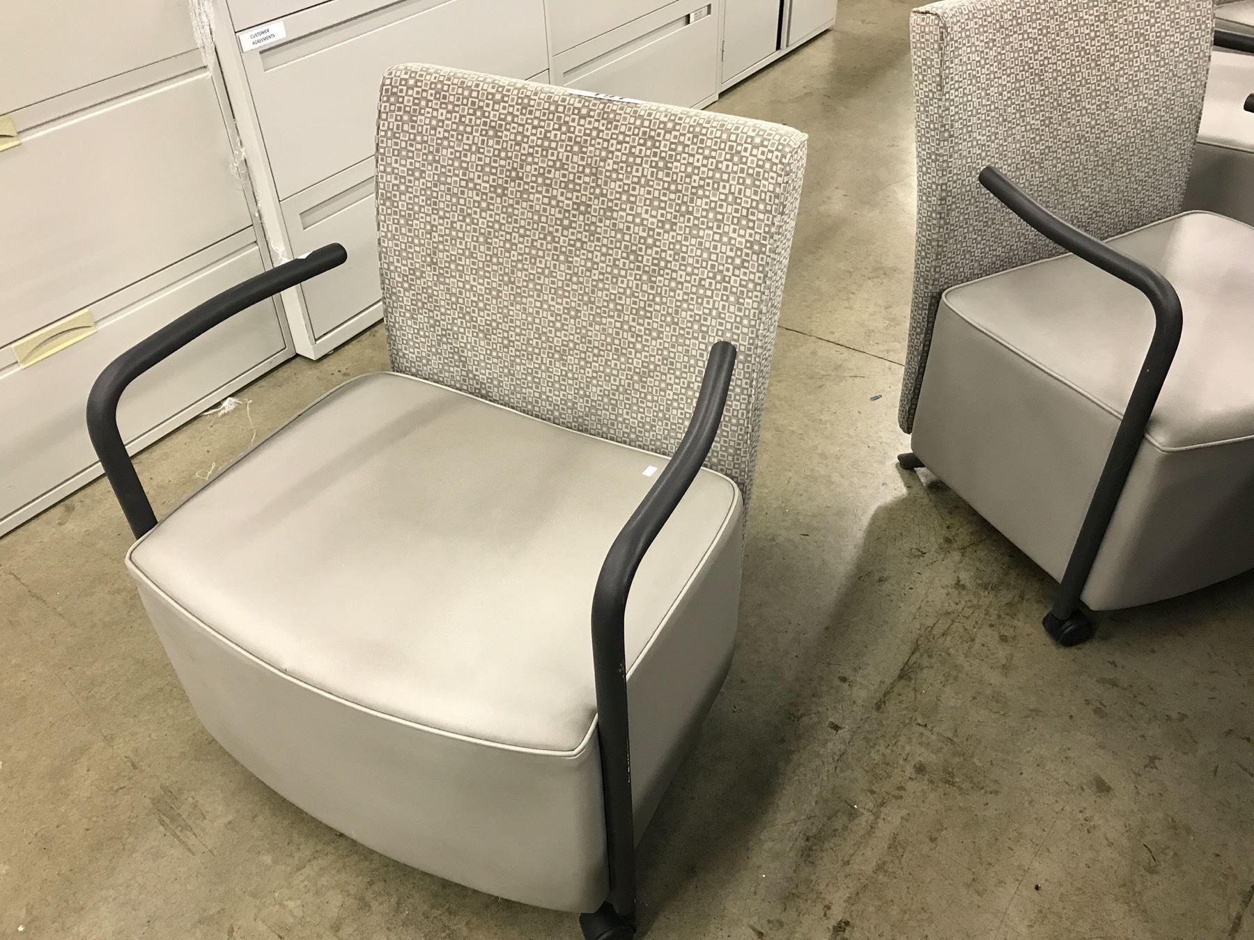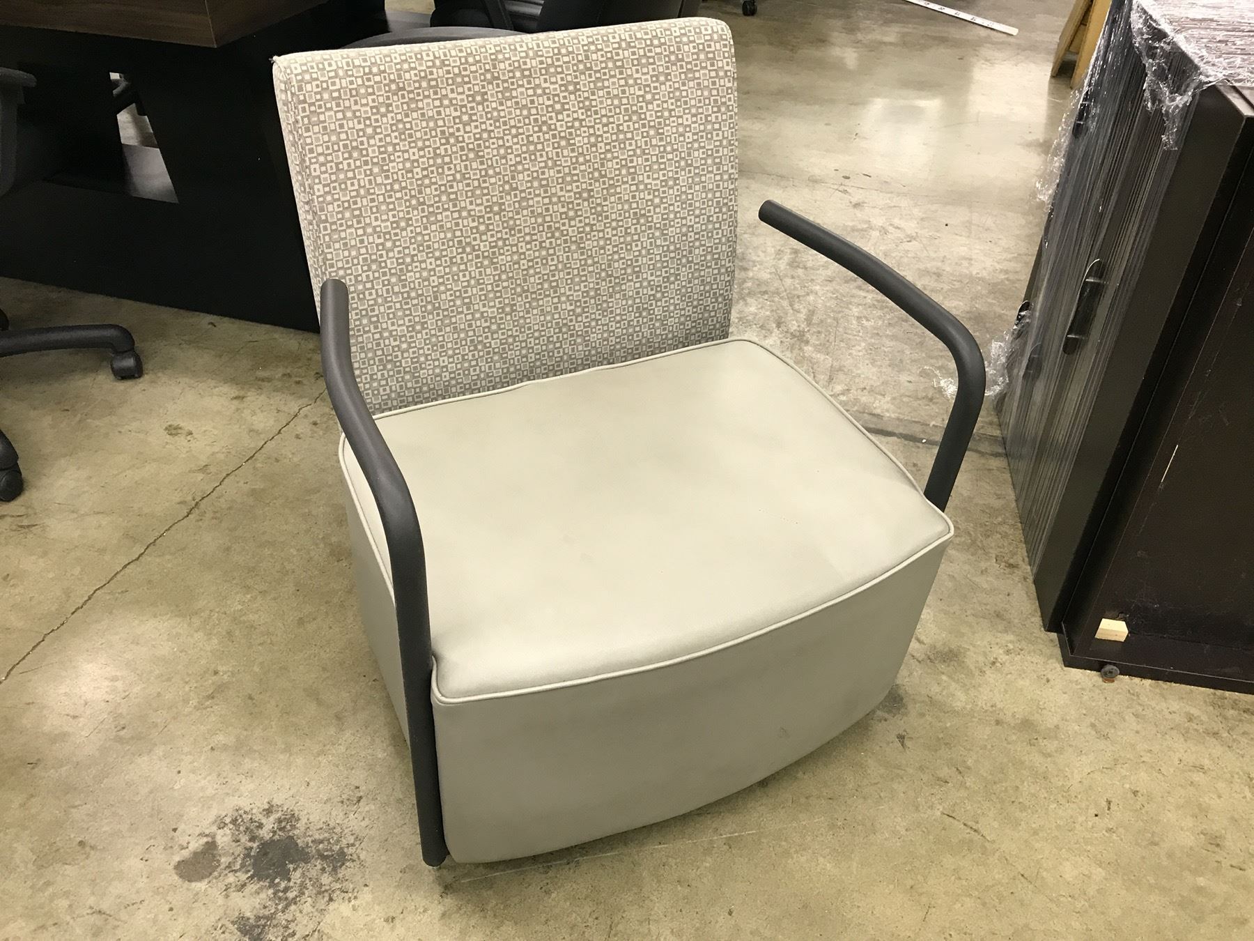 HERMAN MILLER CELESTE GREY PATTERNED CLIENT CHAIR, NO CASTERS