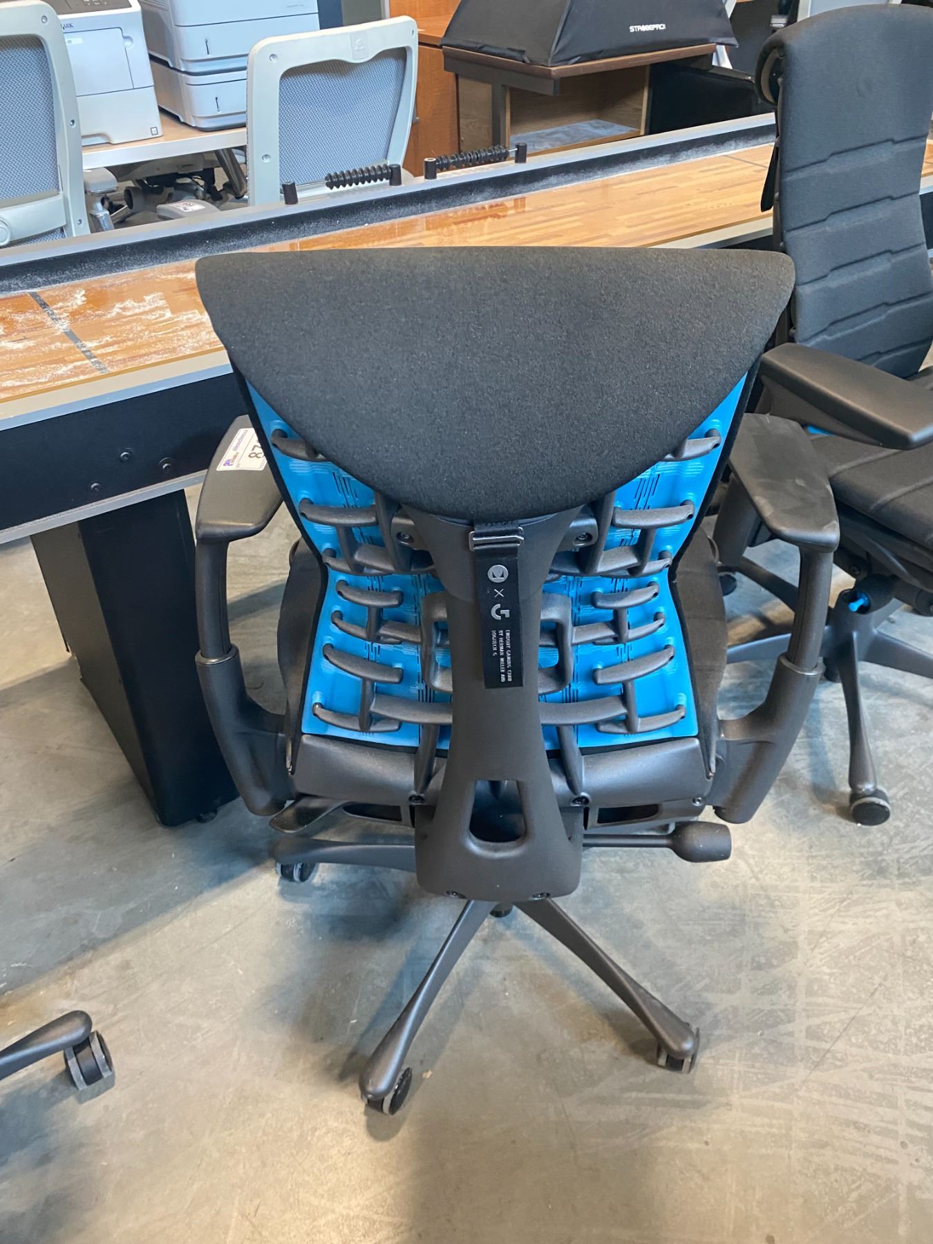 HERMAN MILLER EMBODY BLACK/CYAN FULLY ADJUSTABLE GAMING TASK CHAIR (BROKEN BACKREST)
