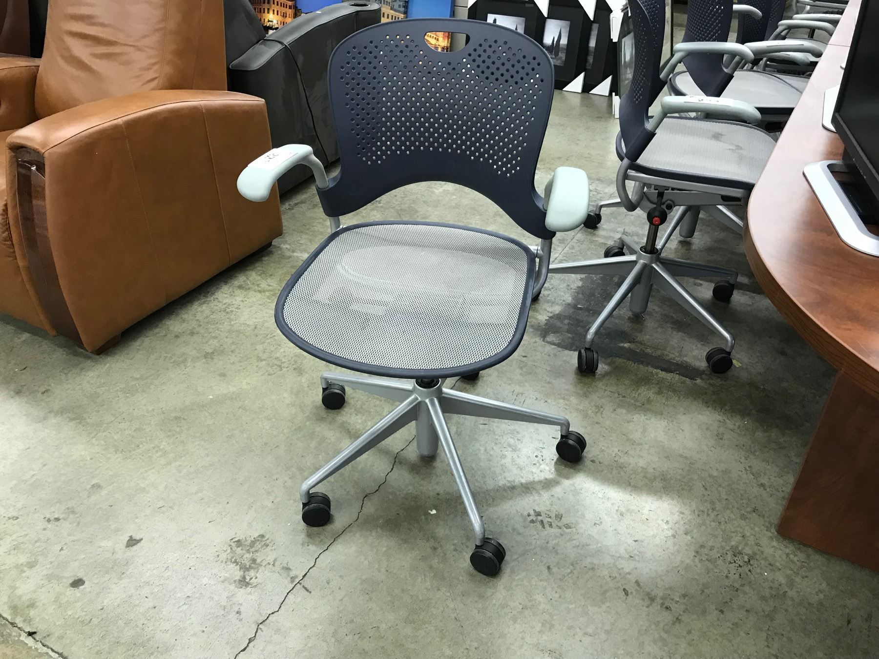 HERMAN MILLER EVO NAVY AND GREY VENTED BACK WITH MESH BOTTOM ADJUSTABLE MOBILE TASK CHAIR