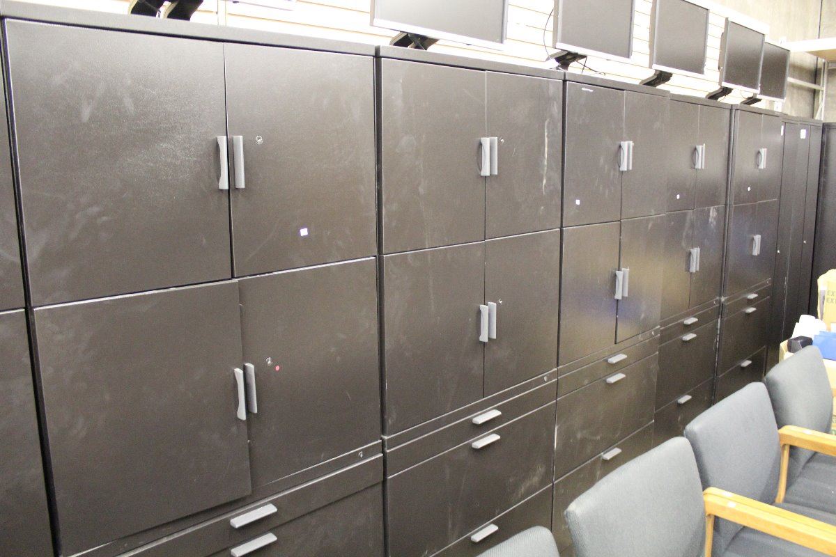 HERMAN MILLER MERIDIAN BLACK 6' TALL 2 DRW. LATERAL FILE WITH 4 DOOR STORAGE ON TOP
