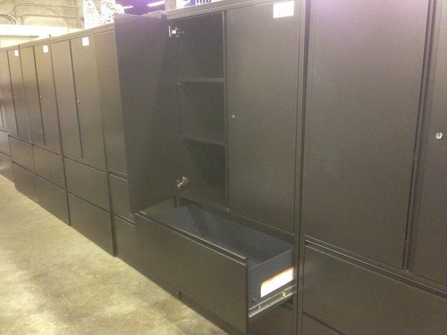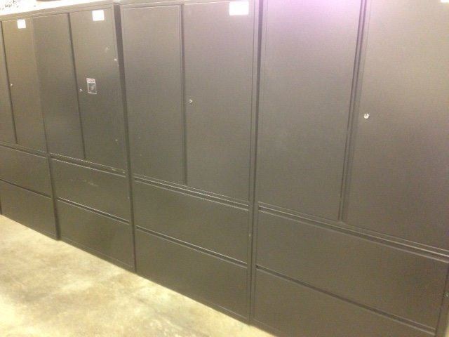HERMAN MILLER MERIDIAN BLACK 6' TALL CABINET WITH 2 DR LATERAL FILE ON THE BOTTOM AND 2 DOOR