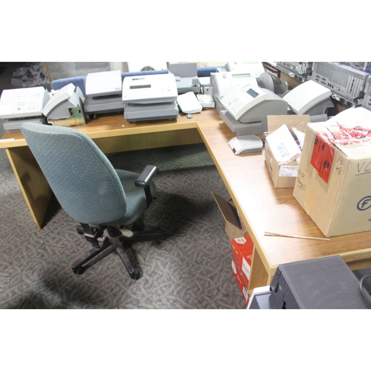 HICKORY L-SHAPED DESK WITH A GREEN TASK CHAIR
