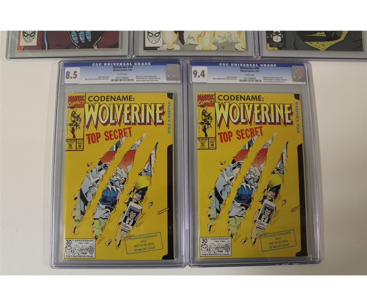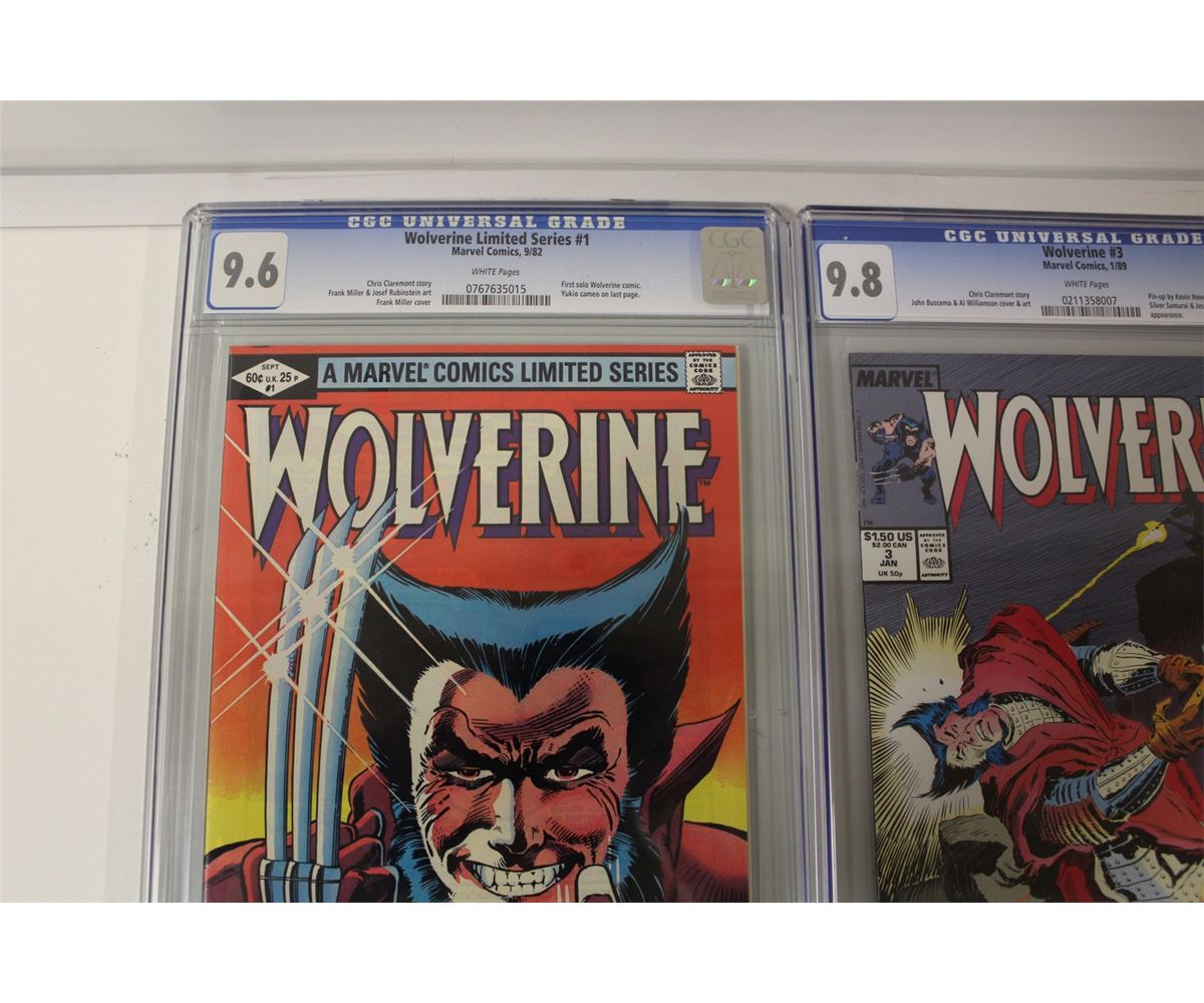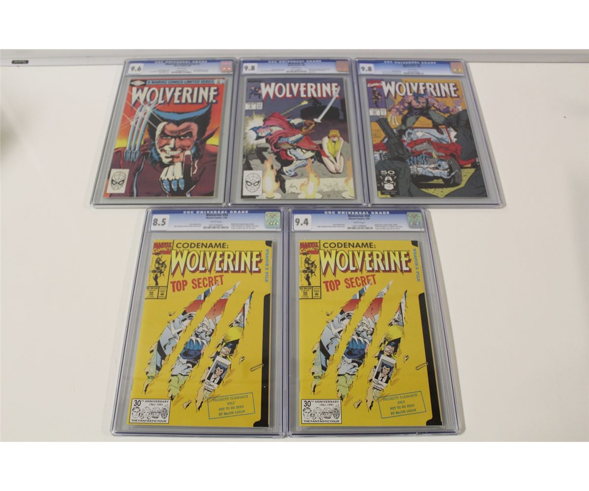 HIGH END WOLVERINE CGC BOOKS, INCLUDING MINI-SERIES #1 GRADED 8.5 - 9.6 EXCELLENT ASSORTMENT 5 BOOKS TOTAL, (DOUBLES OF # 50) SWEET 9.6 ON KEY ISSUE OF MILLER # 1