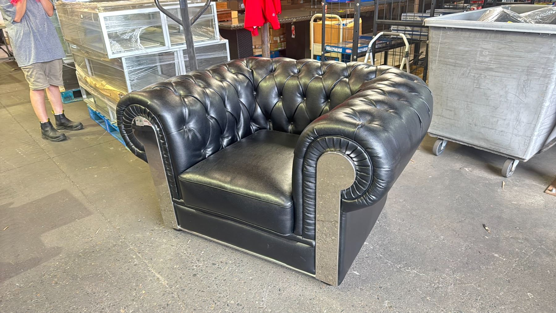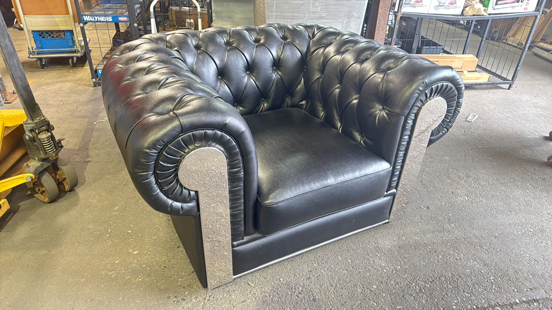 HIGH QUALITY BLACK LEATHER BUTTON BACK CLUB CHAIR
