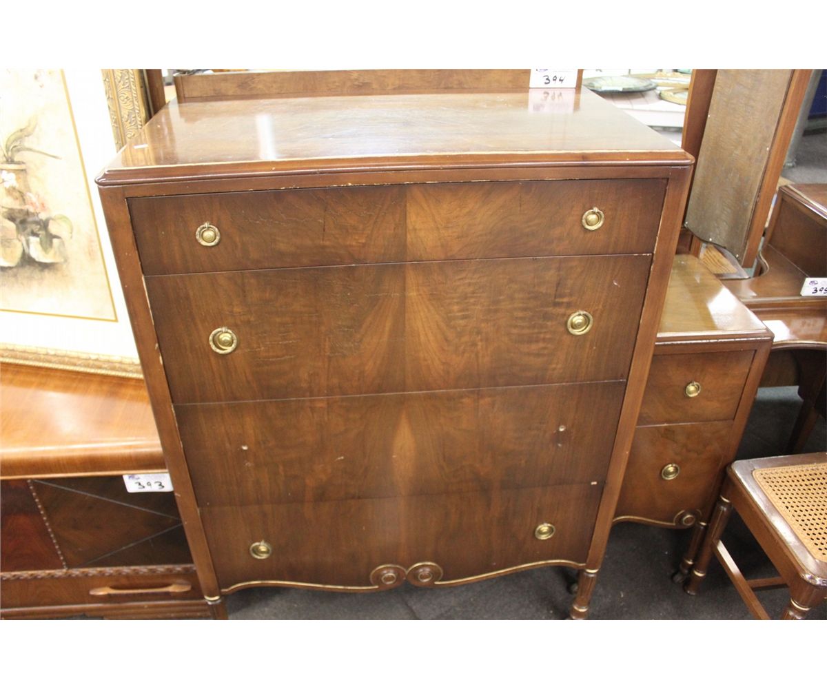 HIGHER BOY DRESSER - 4 DRAWER, CAST IRON WHEELS