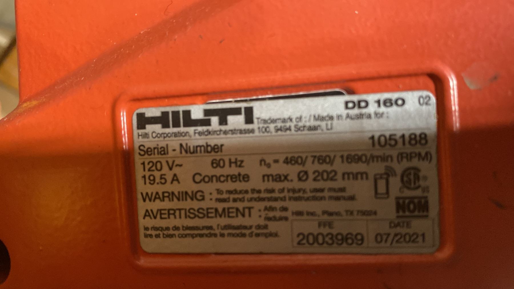 HILTI DD 160 COMPACT INDUSTRIAL ELECTRIC DIAMOND CORING SYSTEM WITH HILTI DD ST 160 CTL DRILL STAND