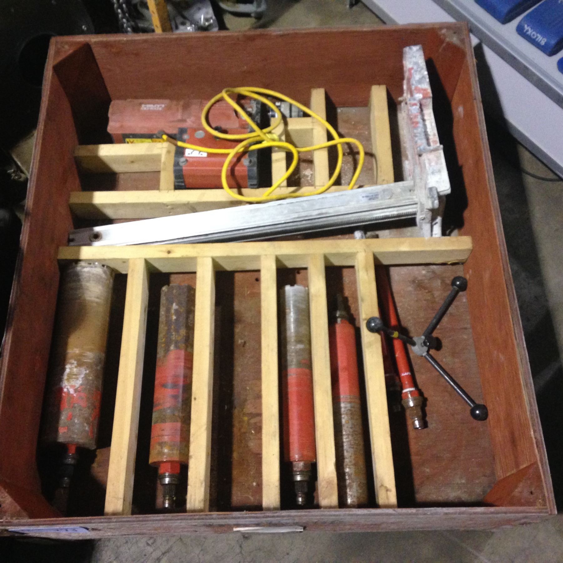 HILTI DD-160E DIAMOND CORE DRILL PRESS WITH HILTI DD-R100S STAND & ASSORTED HILTI BITS IN PALLET CRATE