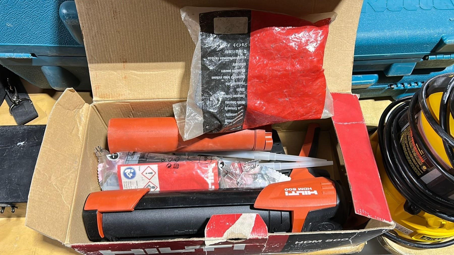 HILTI HDM 500 MANUAL ANCHOR ADHESIVE DISPENSER WITH ASSORTED EXTRA PARTS