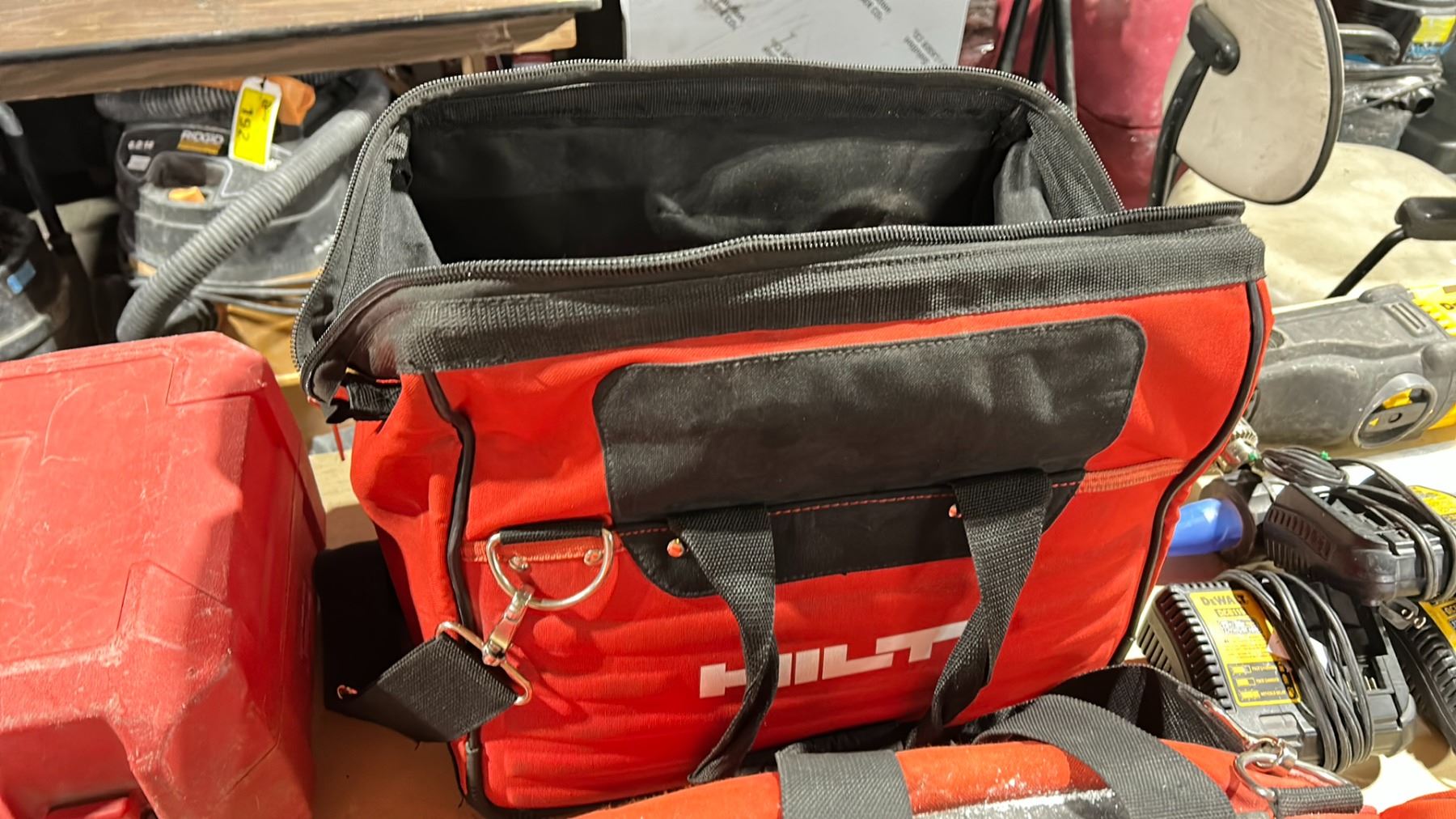 HILTI SOFT TOOL BAG OF ASSORTED POWER TOOLS, CORDLESS TOOLS & BATTERY CHARGER