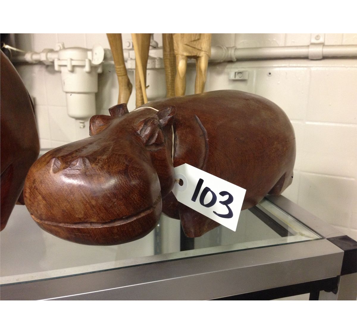 HIPPO, HAND CARVED 5" TALL 13" LONG