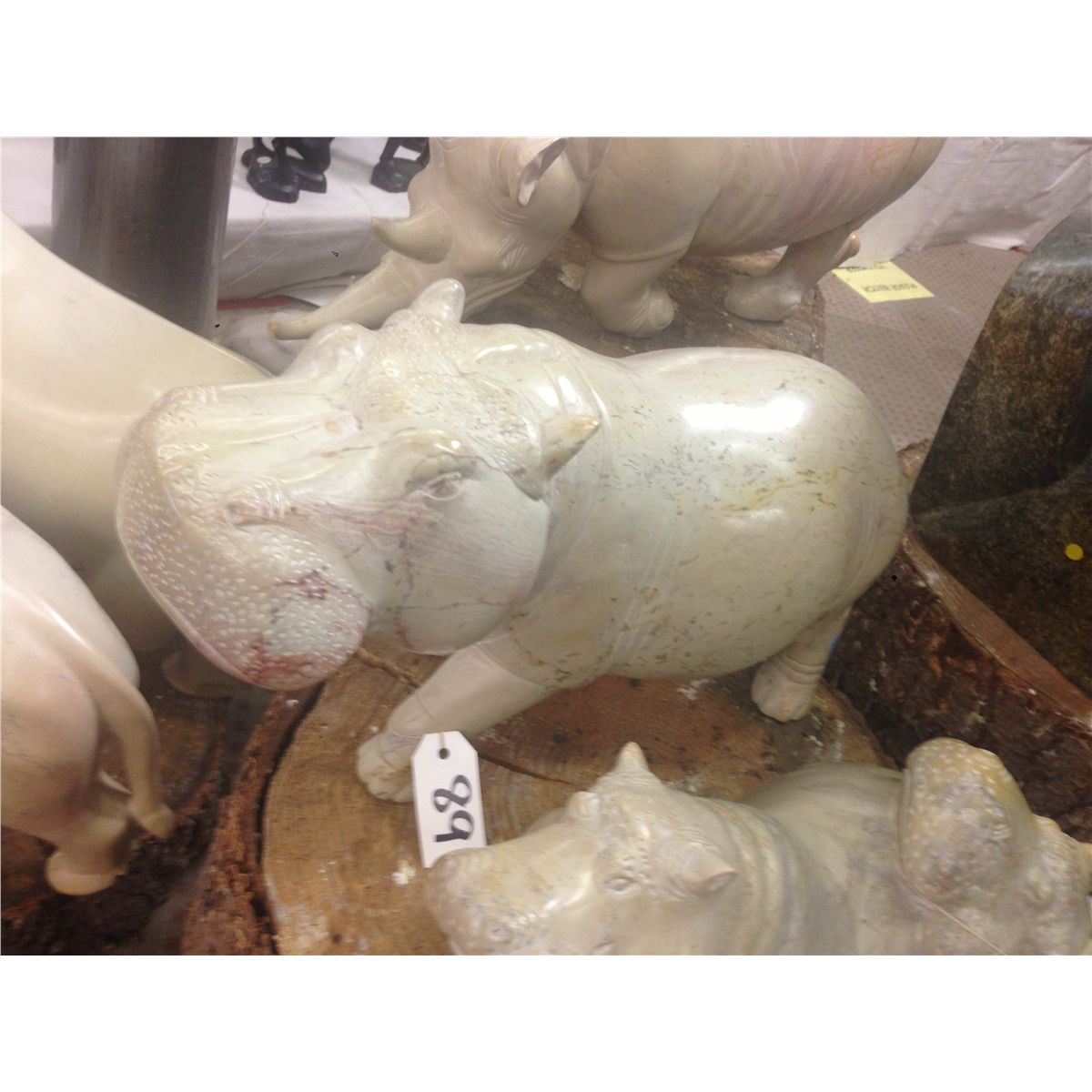 HIPPO, HAND CARVED FROM KENYAN SOFT STONE. 11" TALL 20" LONG
