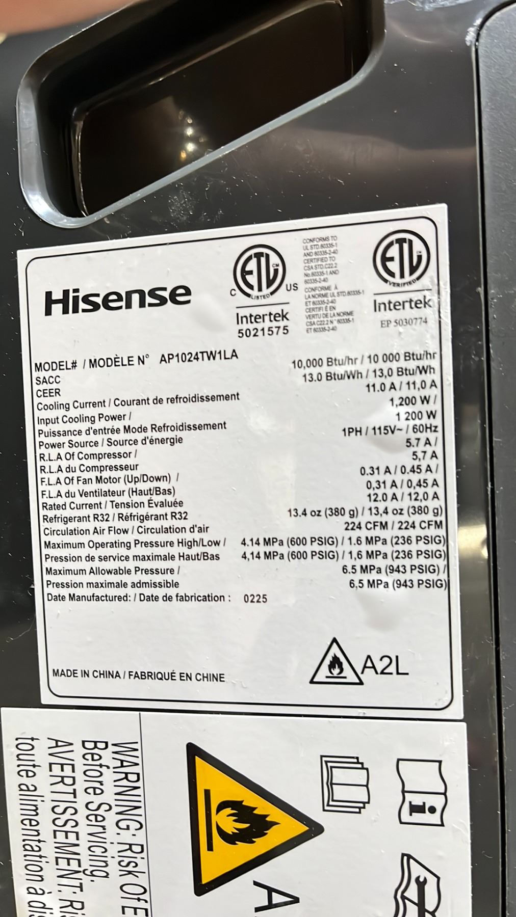 HISENSE 10,000 BTU PORTABLE DUAL HOSE AIR CONDITIONER WITH HOSES, REMOTE & WINDOW SLIDES