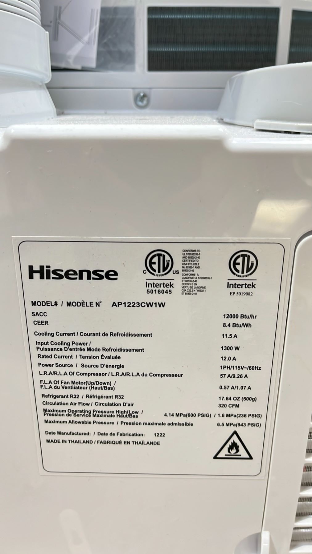HISENSE 12,000 BTU PORTABLE AIR CONDITIONER WITH HOSE (NO REMOTE, NO ACCESSORIES)