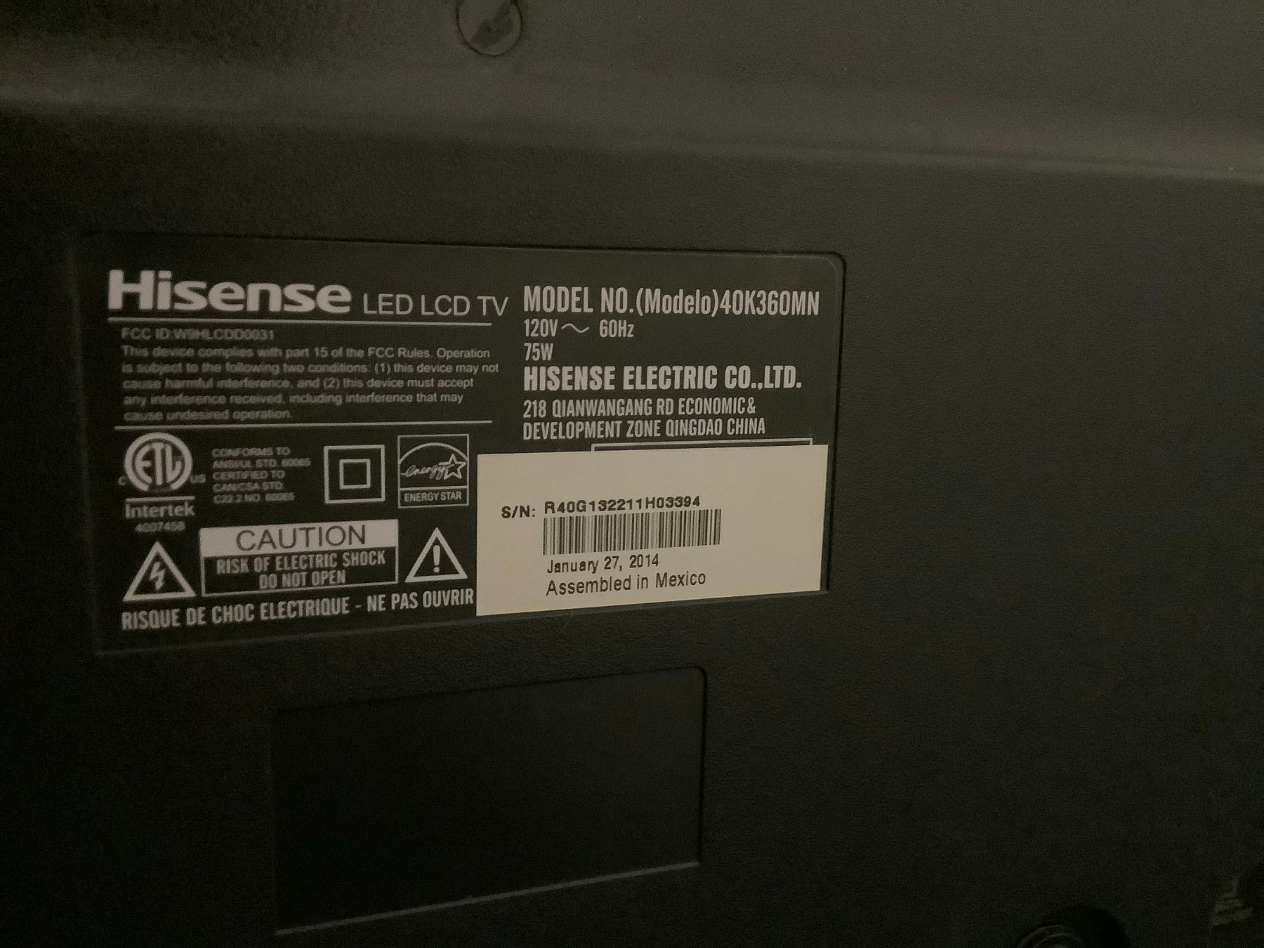 HISENSE 36"" TV WITH REMOTE, AND STAND