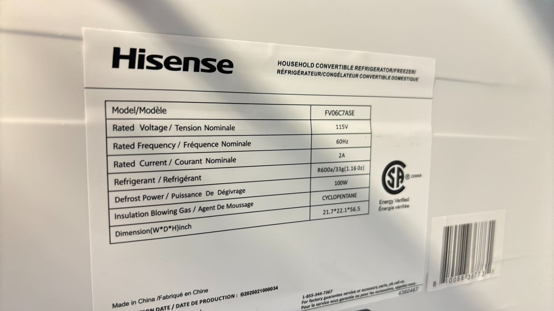 HISENSE FV06C7ASE 6.0 CU. FT 21.5"W STAINLESS STEEL LOOK CONVERTIBLE UPRIGHT FRIDGE OR FREEZER