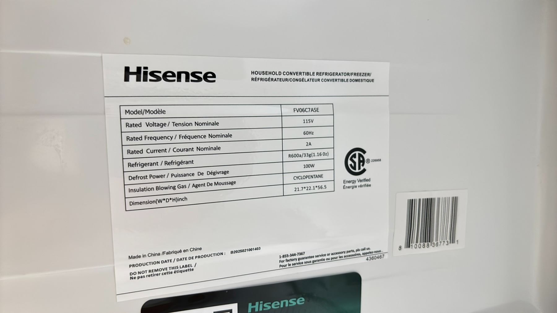 HISENSE FV06C7ASE 6.0 CU. FT 21.5"W STAINLESS STEEL LOOK CONVERTIBLE UPRIGHT FRIDGE OR FREEZER