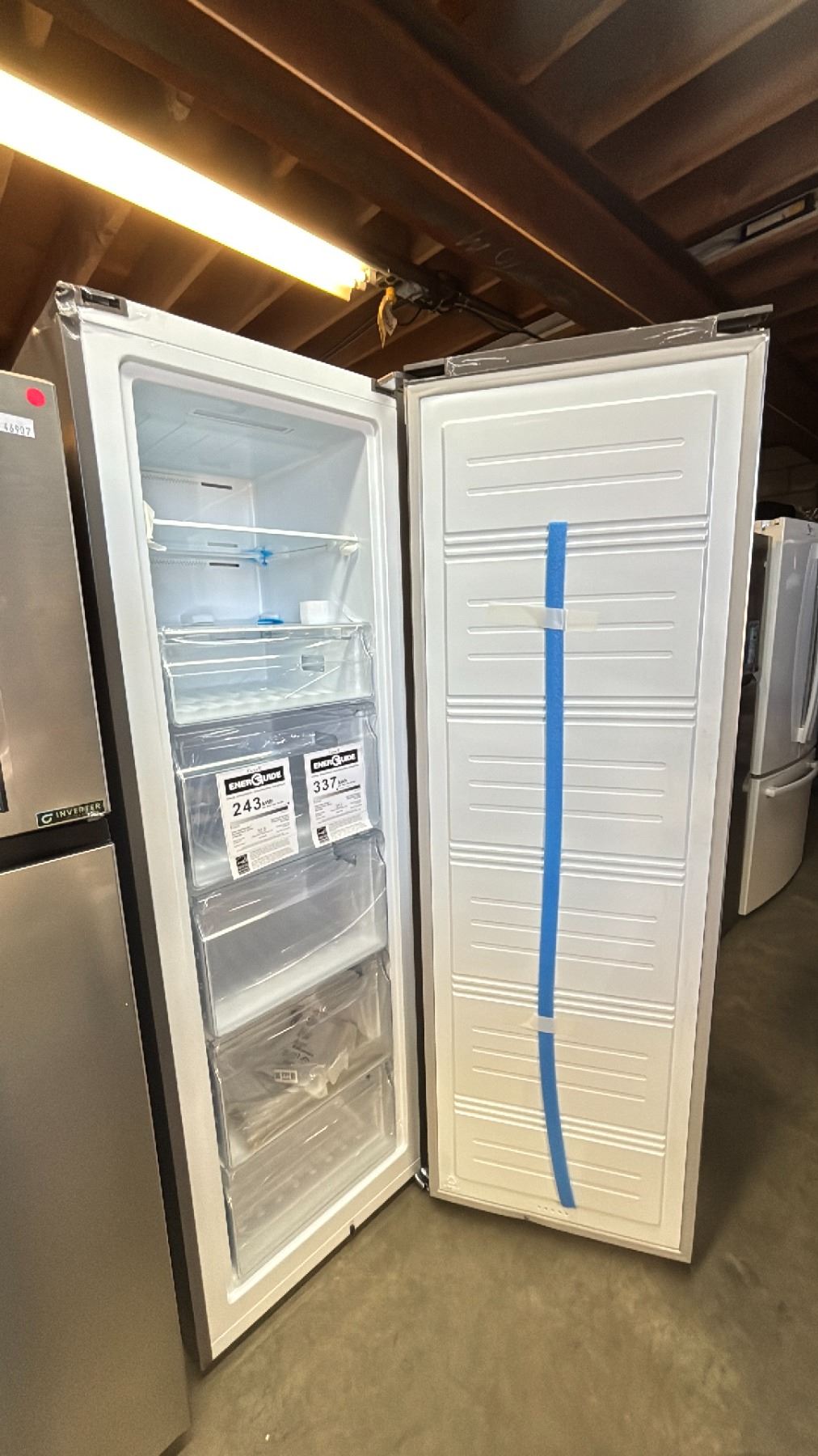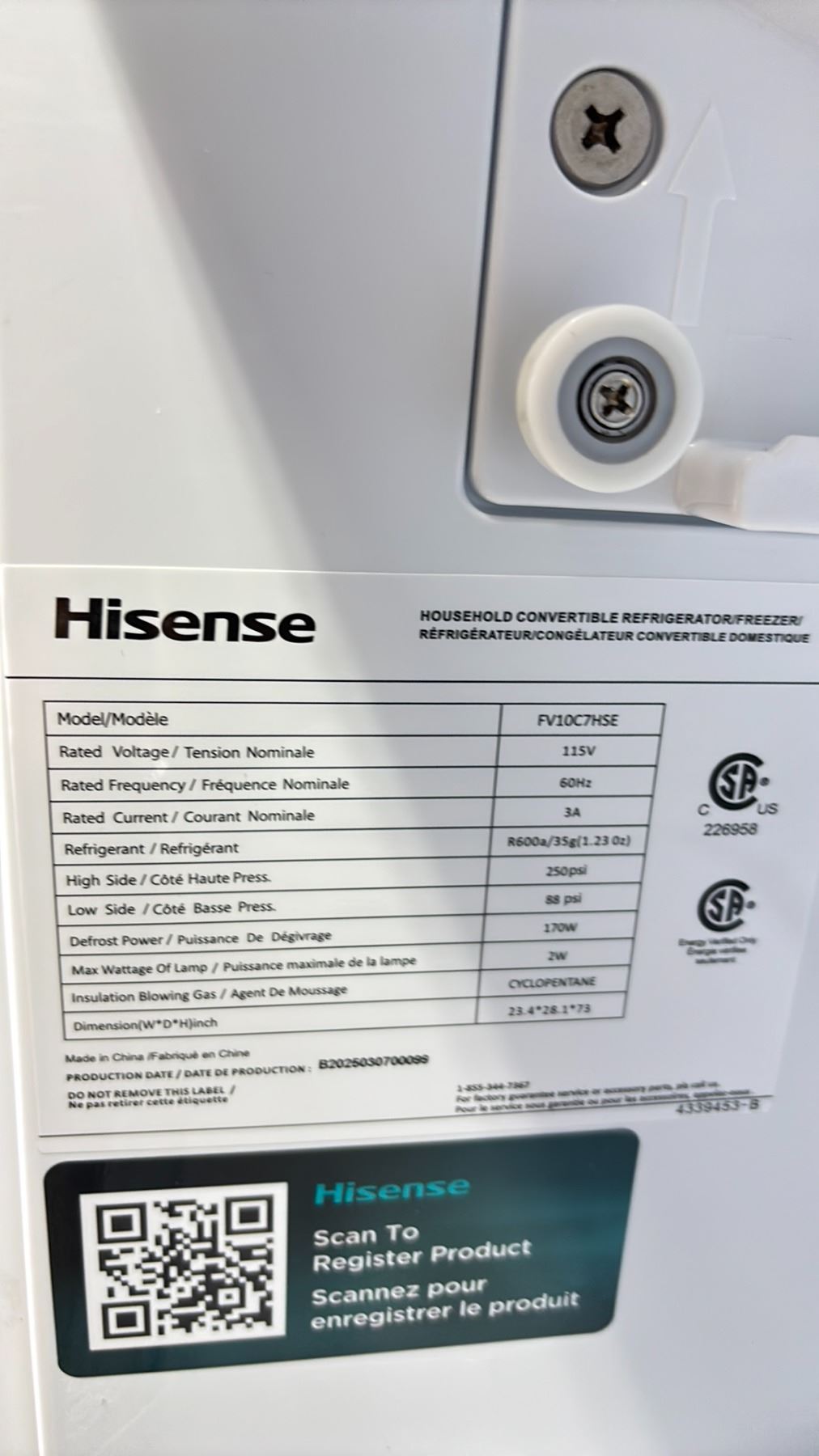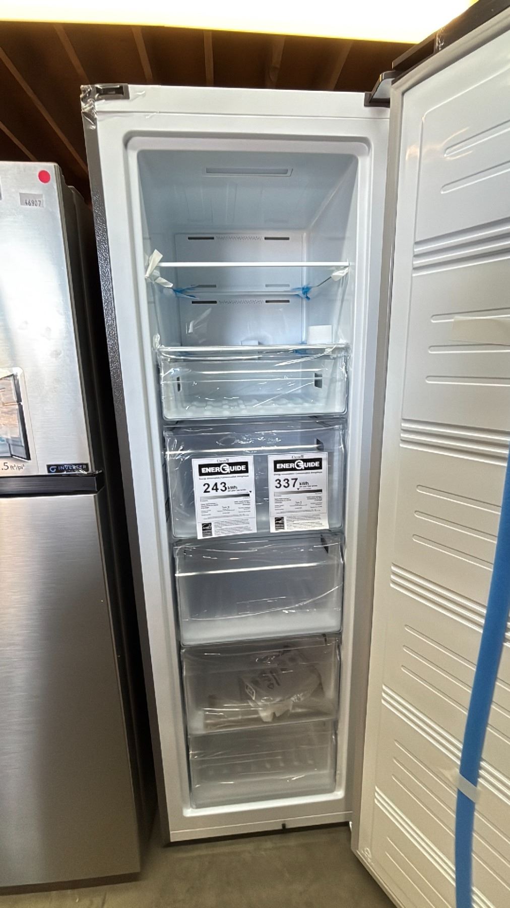 HISENSE FV10C7HSE 23"W STAINLESS STEEL 10 CU. FT UPRIGHT CONVERTIBLE FRIDGE OR FREEZER *TOP LEFT CORNER HAS A MINOR DENT*