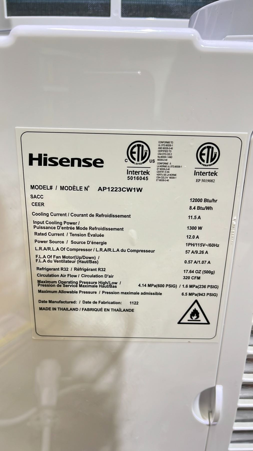 HISENSE PORTABLE AIR CONDITIONER *NO HOSE/ NO REMOTE*
