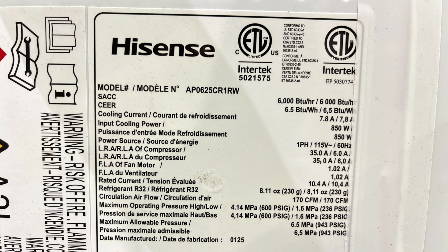 HISENSE PORTABLE AIR CONDITIONER *NO HOSE*
