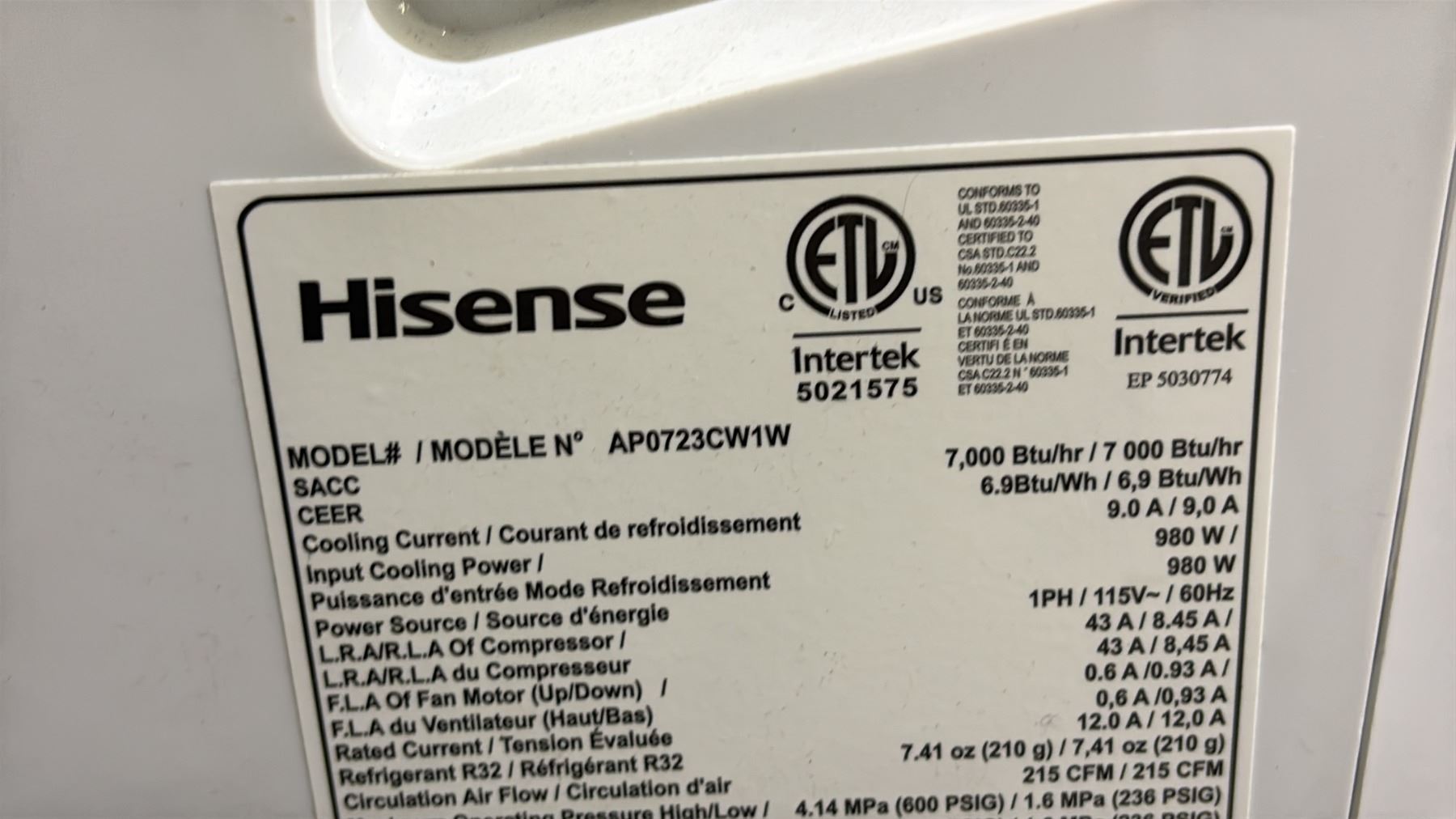 HISENSE PORTABLE AIR CONDITIONER WITH HOSE & WINDOW ATTACHMENT *NO REMOTE*