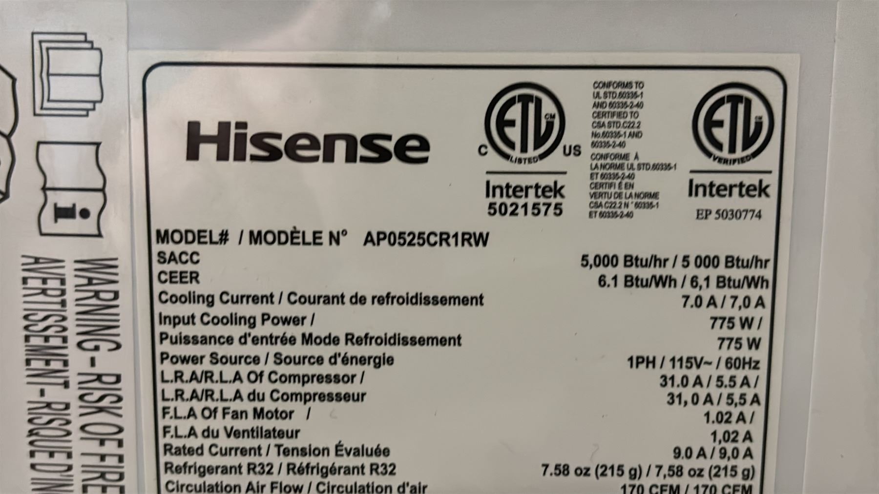 HISENSE PORTABLE AIR CONDITIONER WITH HOSE & WINDOW ATTACHMENT *NO REMOTE*
