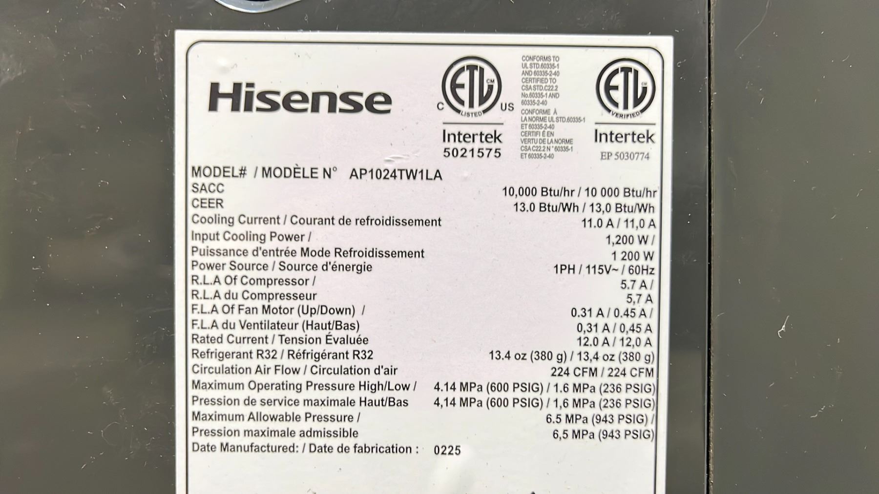 HISENSE PORTABLE AIR CONDITIONER WITH HOSE