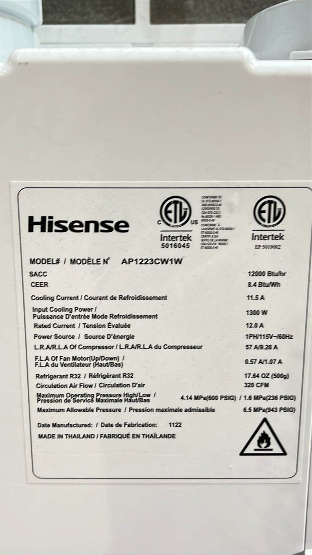 HISENSE PORTABLE AIR CONDITIONER WITH HOSE