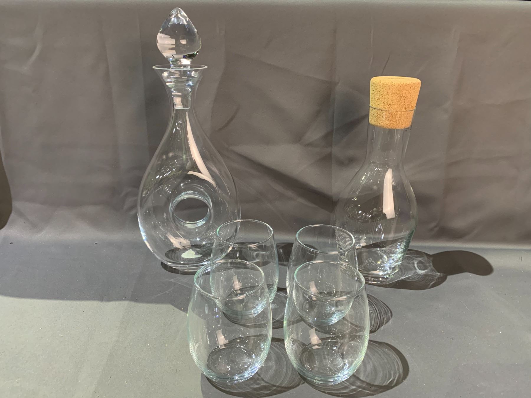 HOLME GAARD GLASS DECANTER, GLASS DECANTER & 4 GLASSES